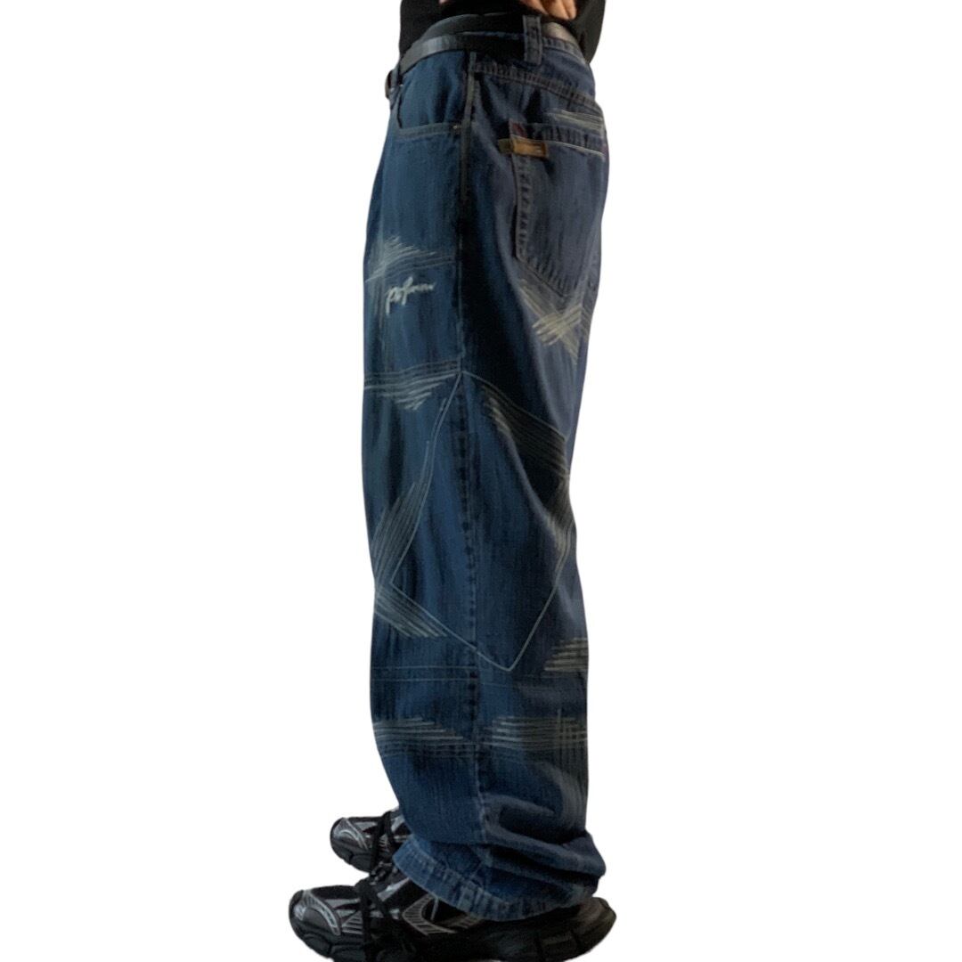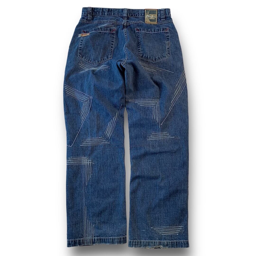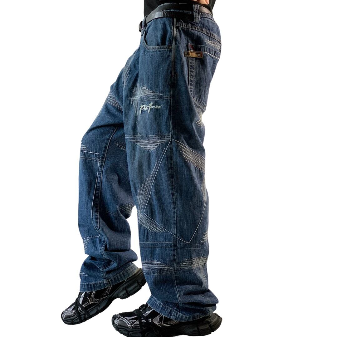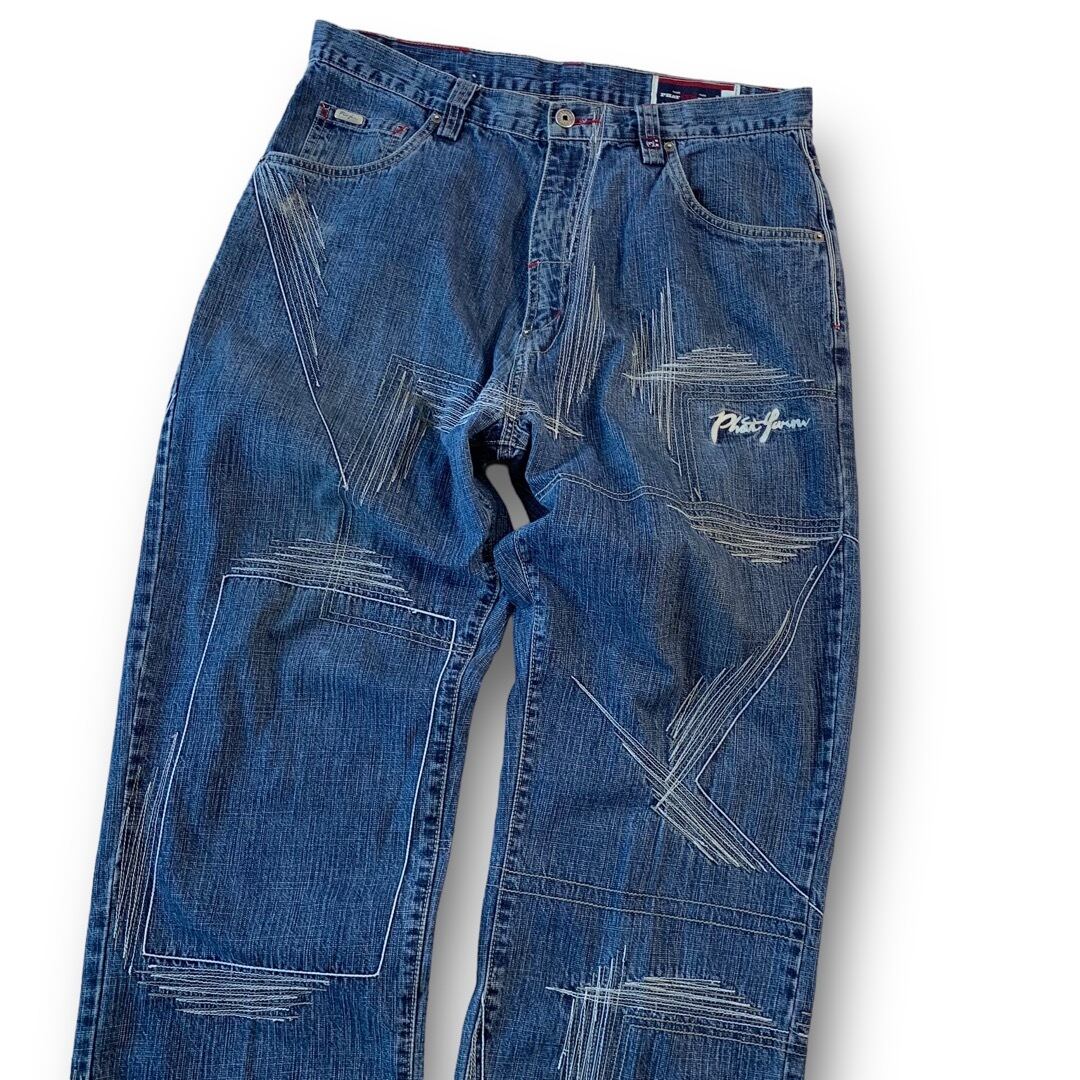 ♾PHAT FARM♾ Design stitch work wide buggy denim pants