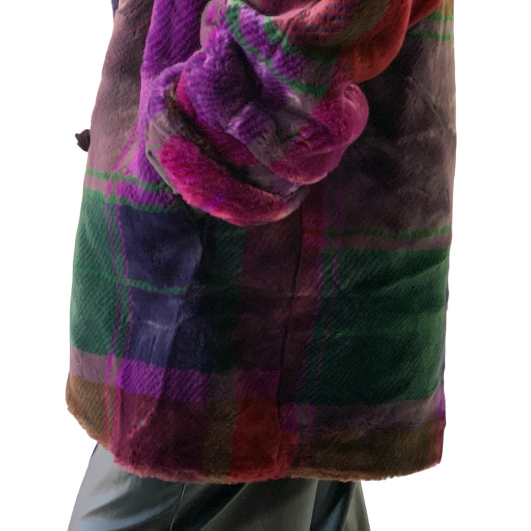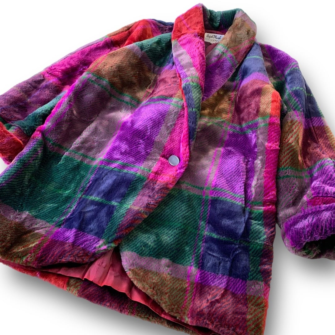 ♾Regal Dlub♾ design color check patterned design faux fur coat MADE IN U.S.A.