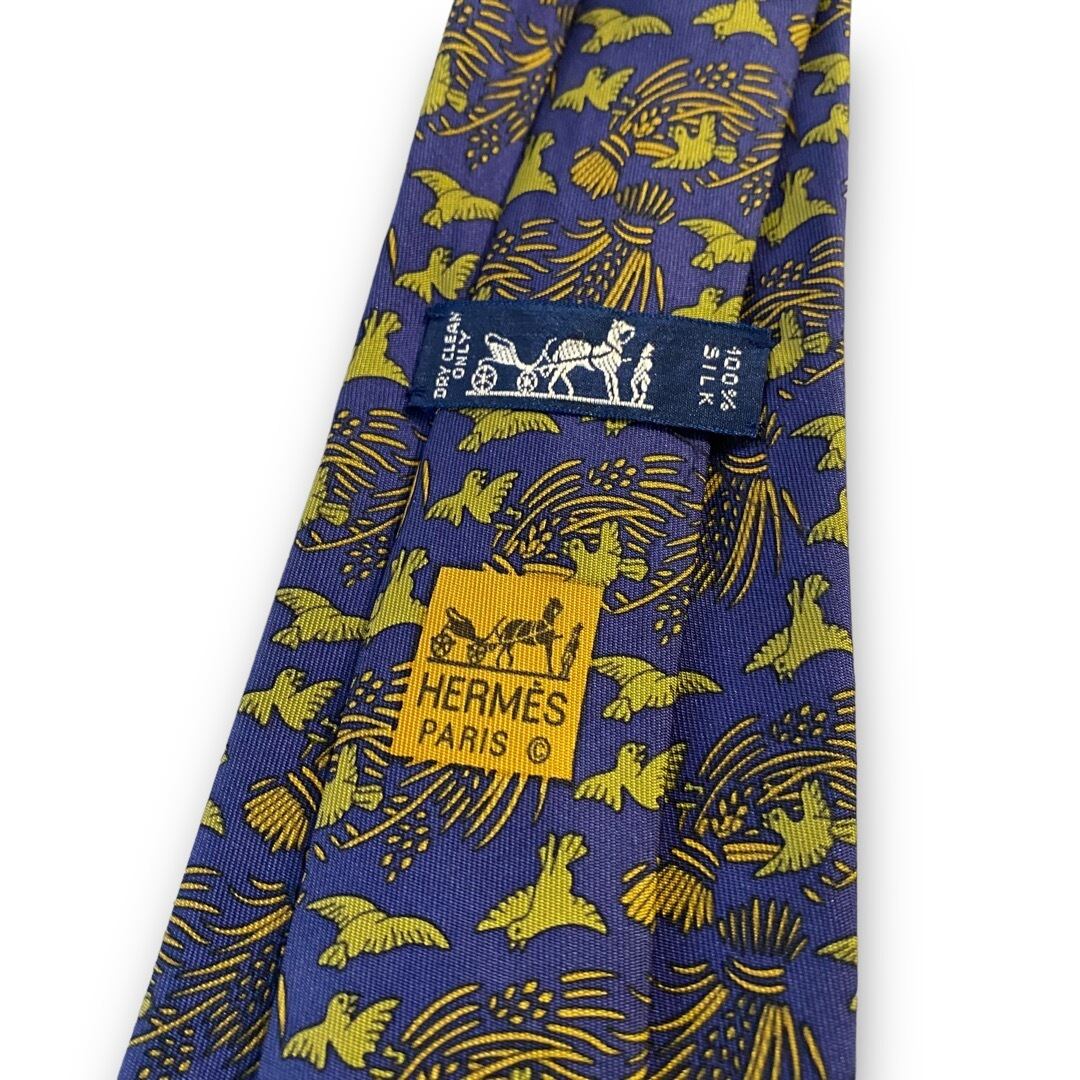 ♾HERMES♾ birds motif design silk necktie MADE IN FRANCE