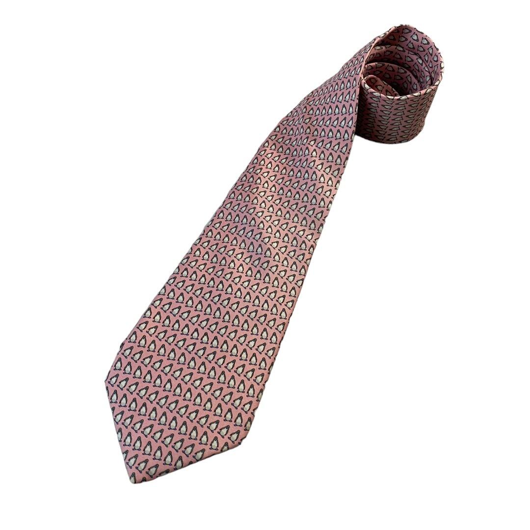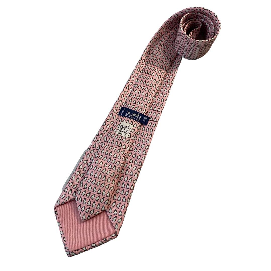 ♾HERMES♾ penguin motif design silk necktie MADE IN FRANCE