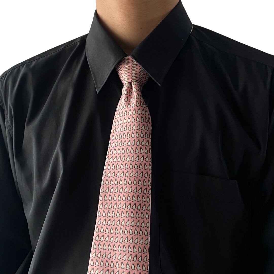 可愛らしいPENGUINモチーフの総柄デザインが高級感溢れる洒落た配色にシルクの上質な素材感がマッチしたシルクネクタイ✨️