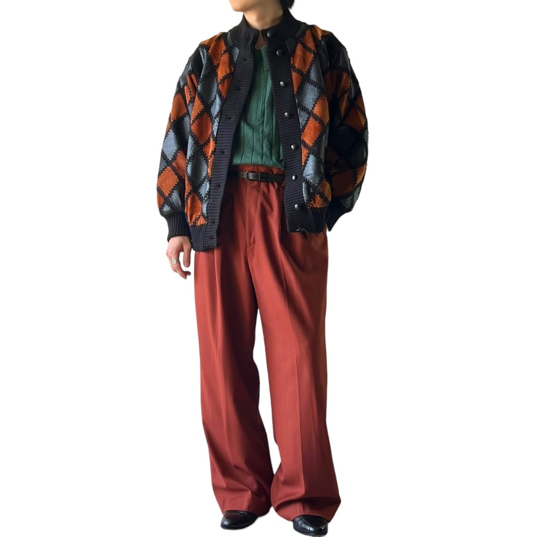 【MENDOZA CRESPO】"MADE IN SPAIN" Crochet pattern leather panel knit blouson