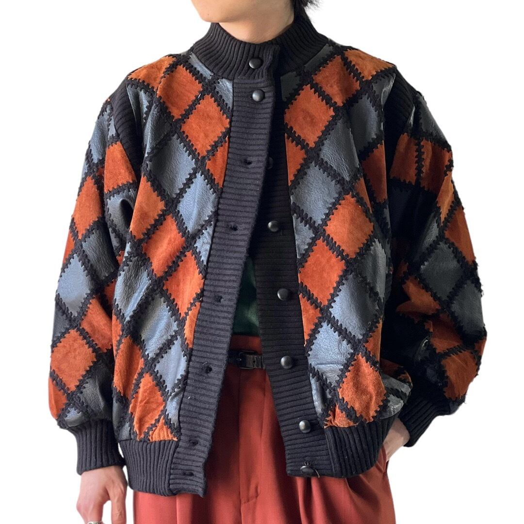 リブはニットでハイネックのこの形にこの配色のレザーが使われているのは古着のレザーアイテムの中でもそうありません♡