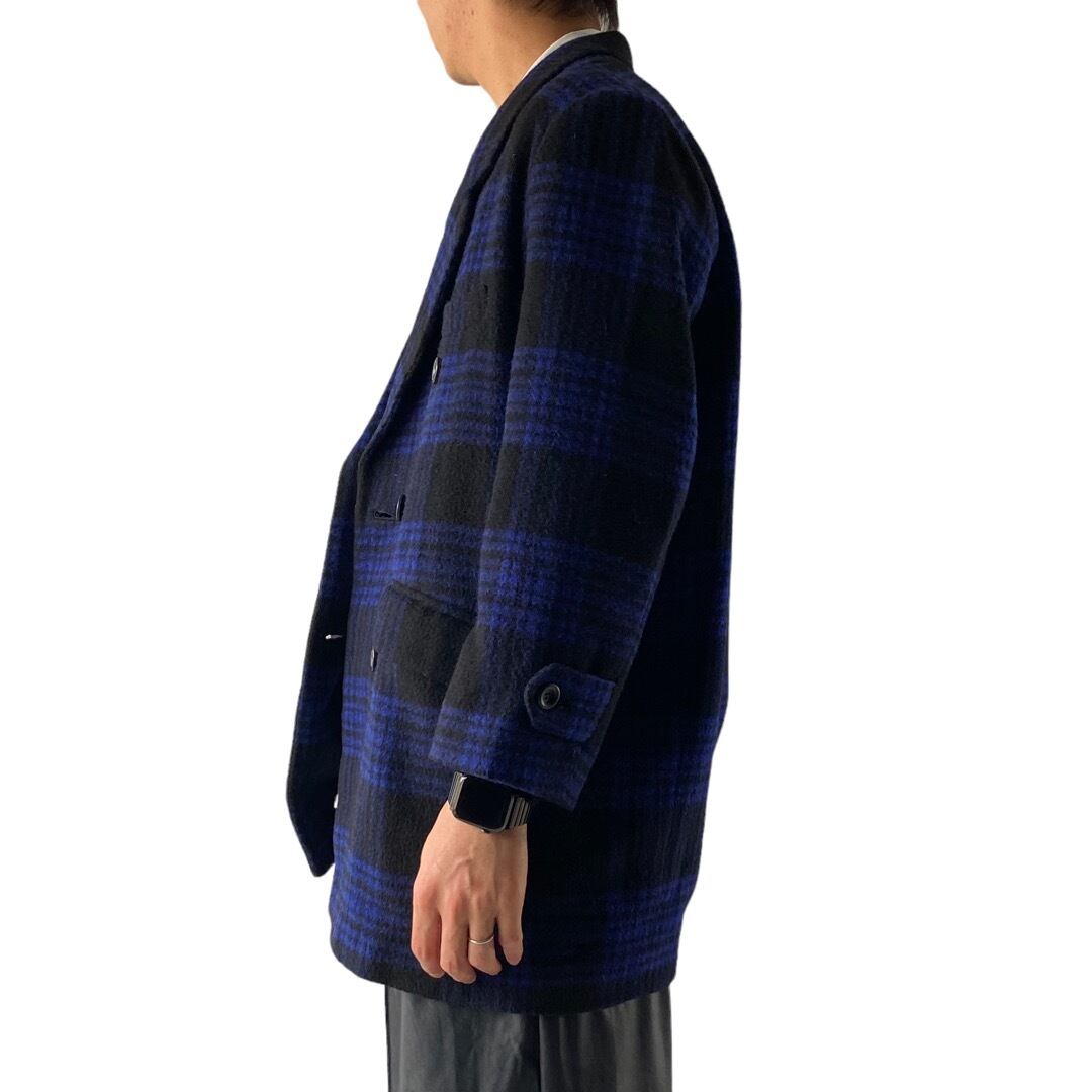ブルー系配色で落ち着きのある大人チェックのダブルブレストジャケット❗️