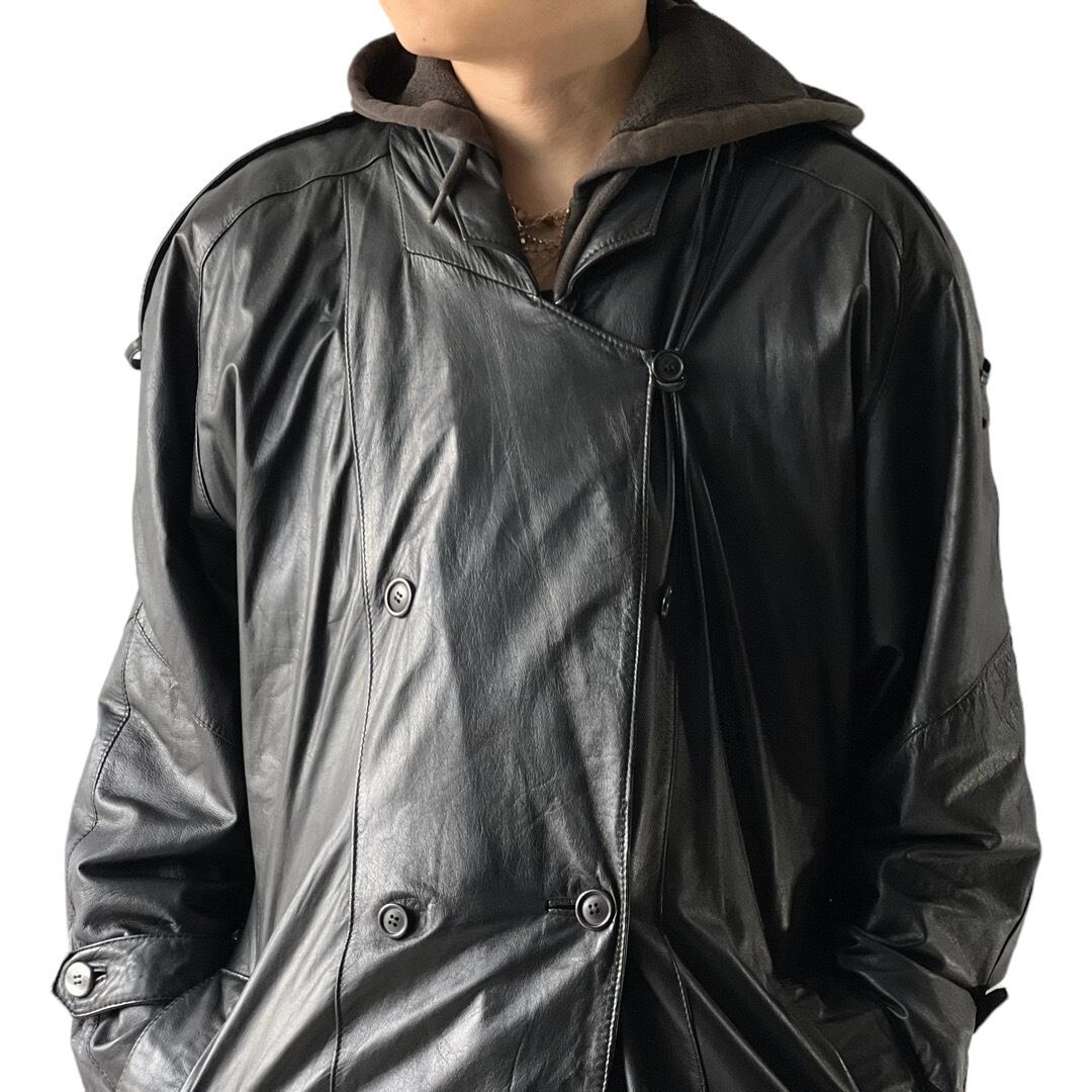 【PELLE STUDIO】 2way neck double breasted leather long coat