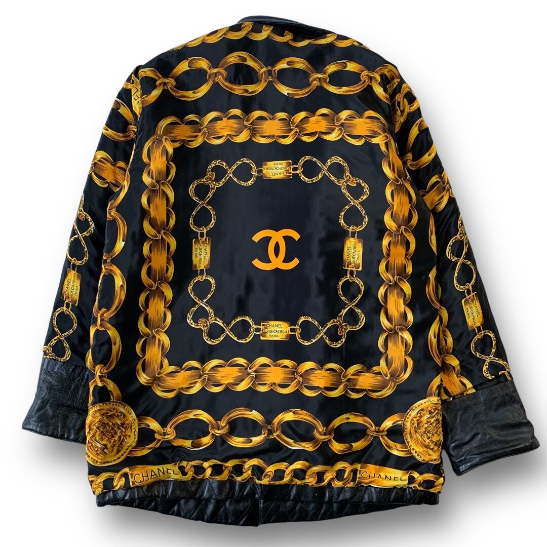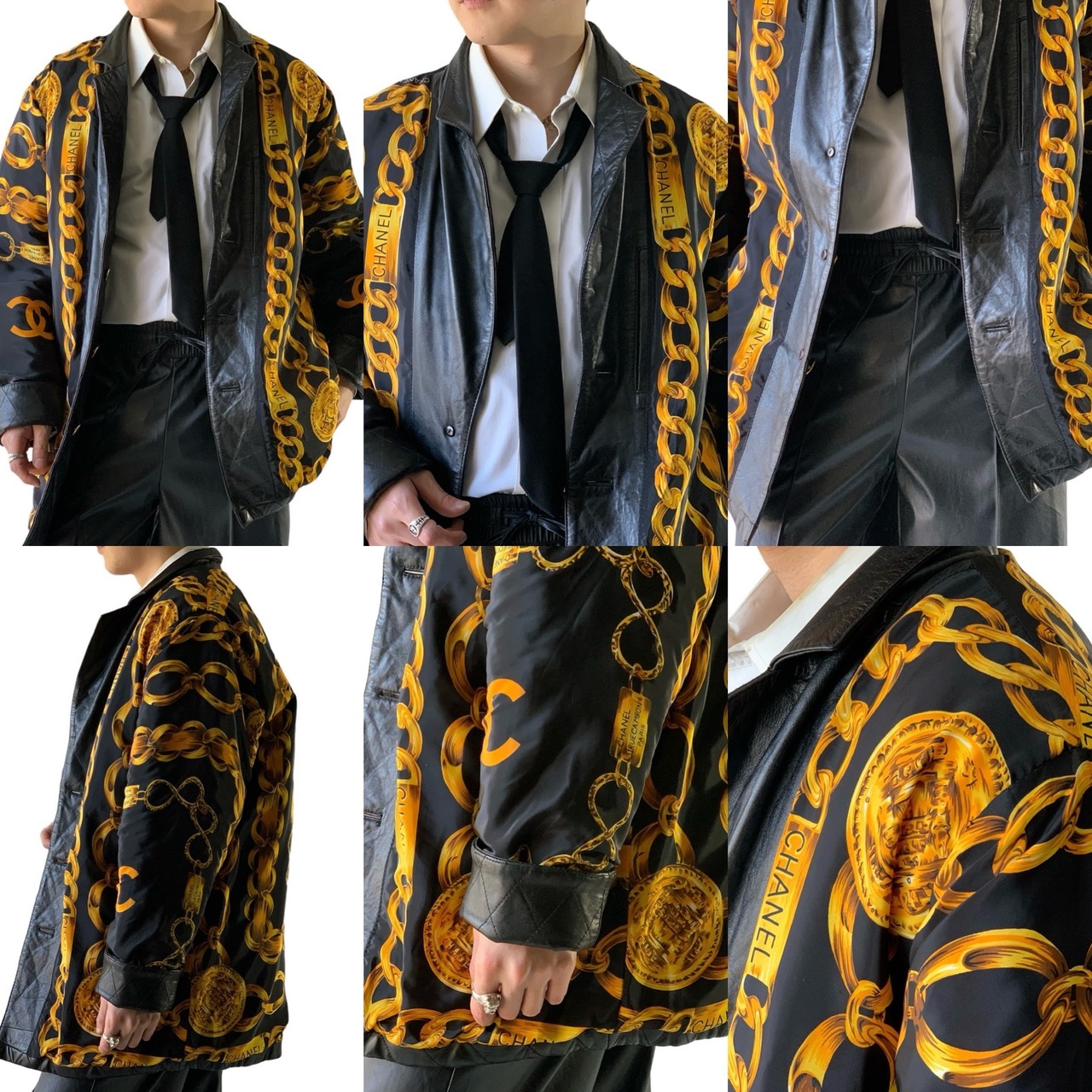 ♾vintage bootleg♾ cocomark motif scarf patterned switching design leather tailored jacket