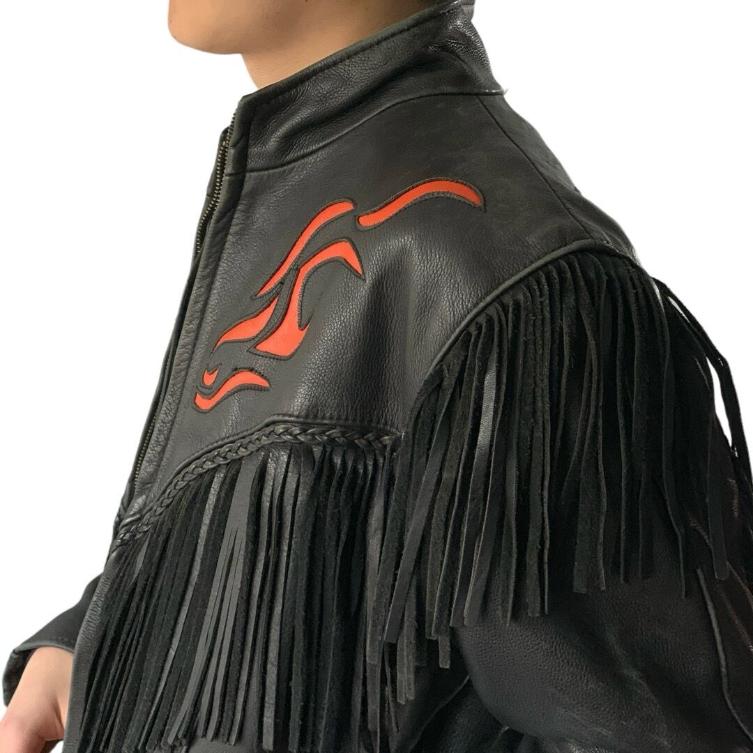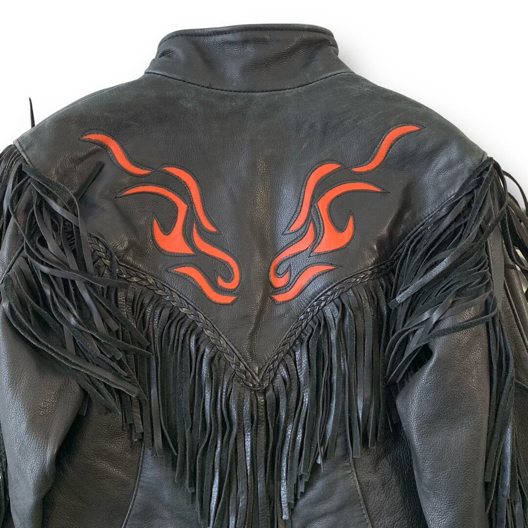 鬼のフリンジにカットワークデザインされたファイヤーパターンが最強のフリンジレザージャケット‼️