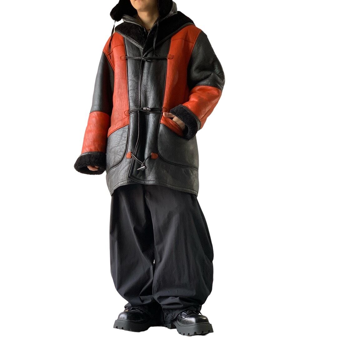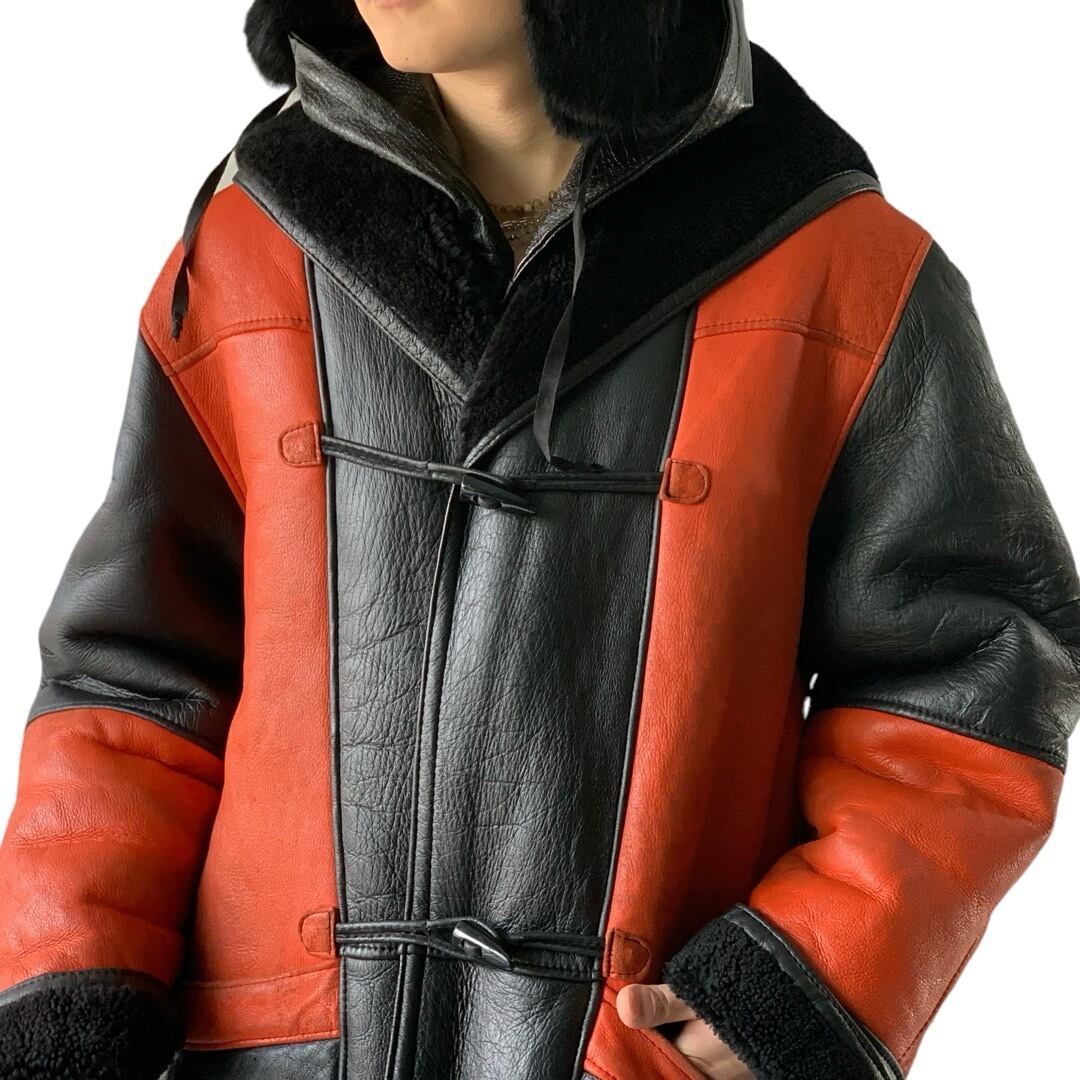 ‼️Special‼️ ♾MILANO shearling♾ shearling black×powerorange two-tone mouton hooded