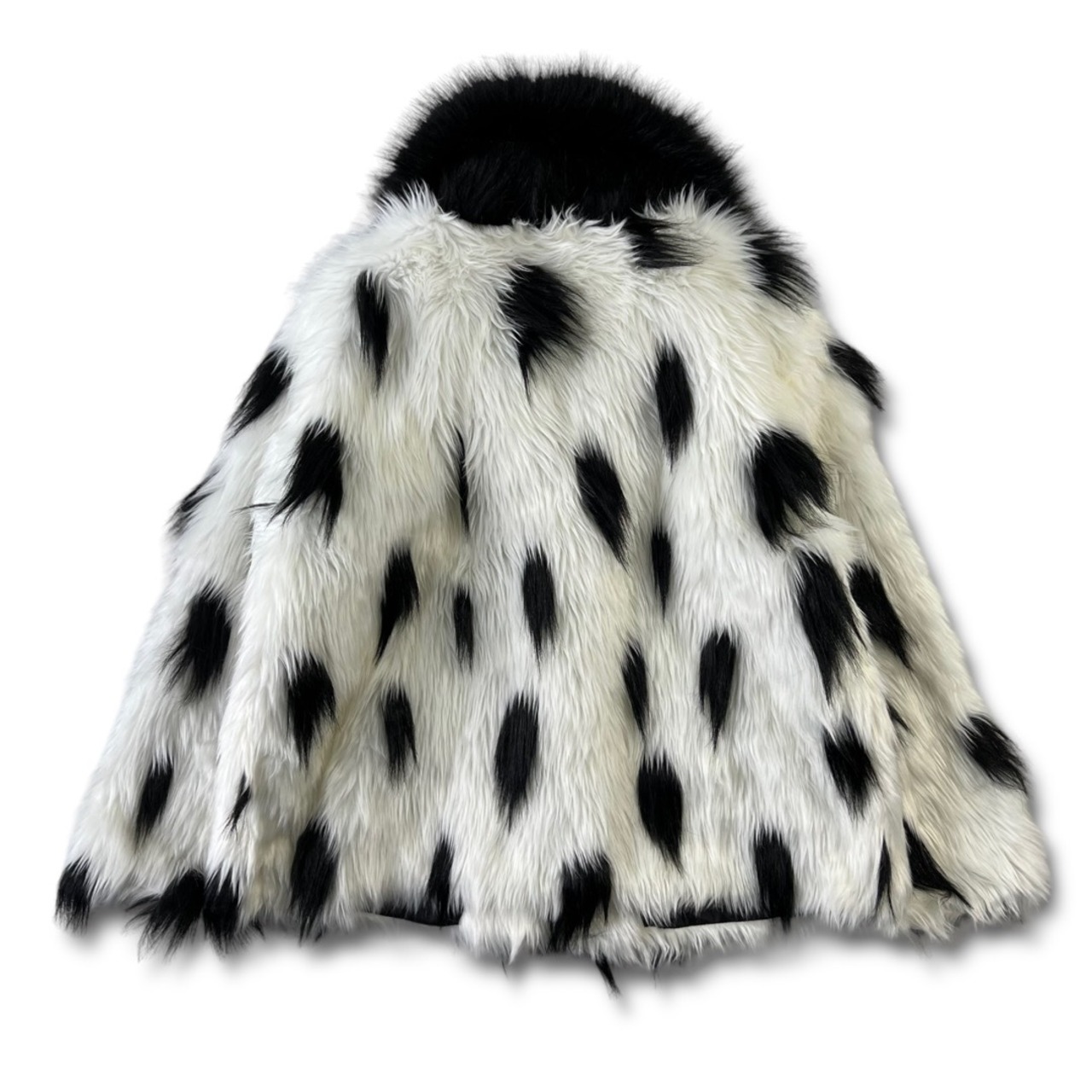 【ASHLEY STEWART】 Animal pattern over silhouette Fur jacket