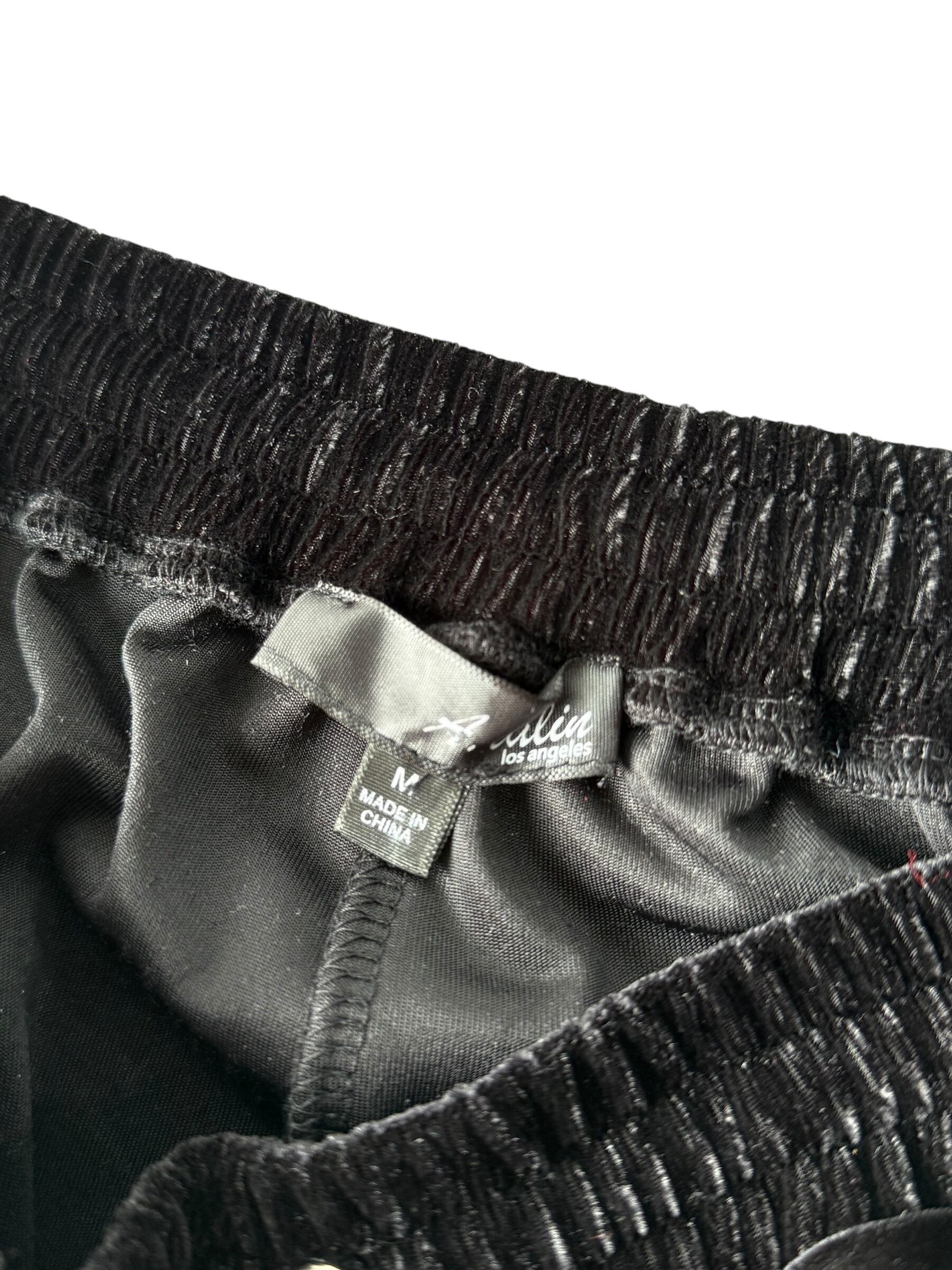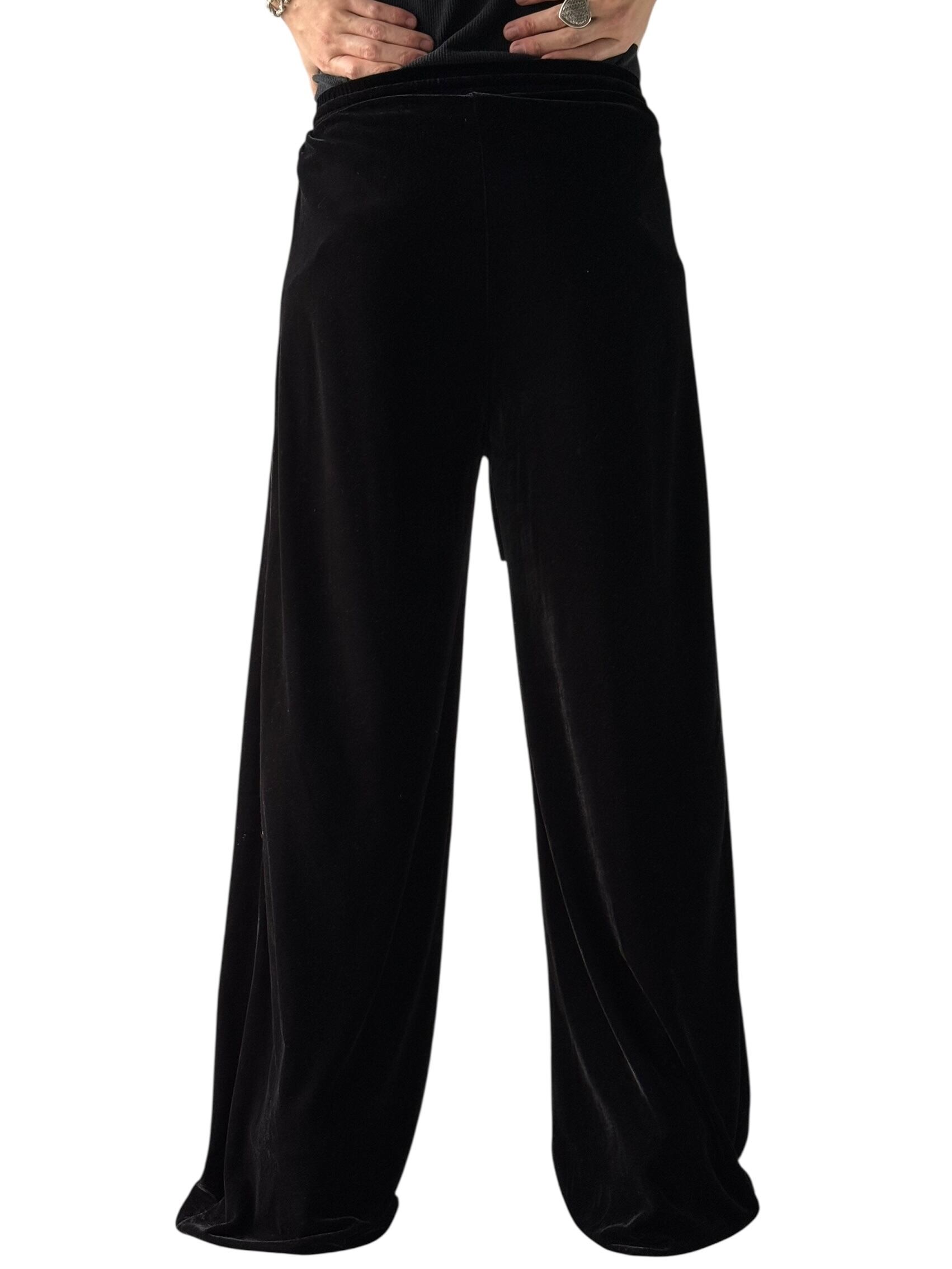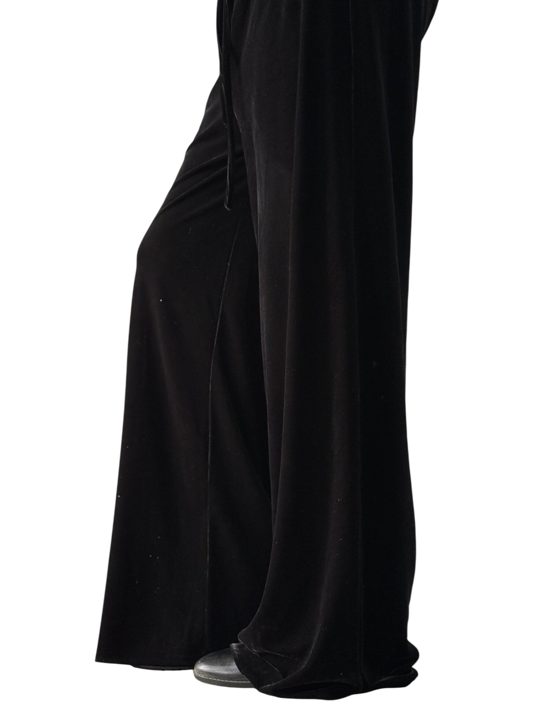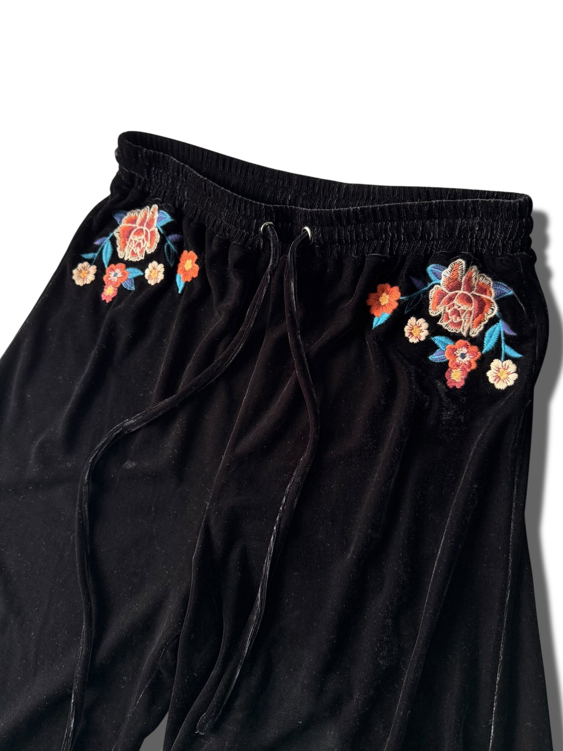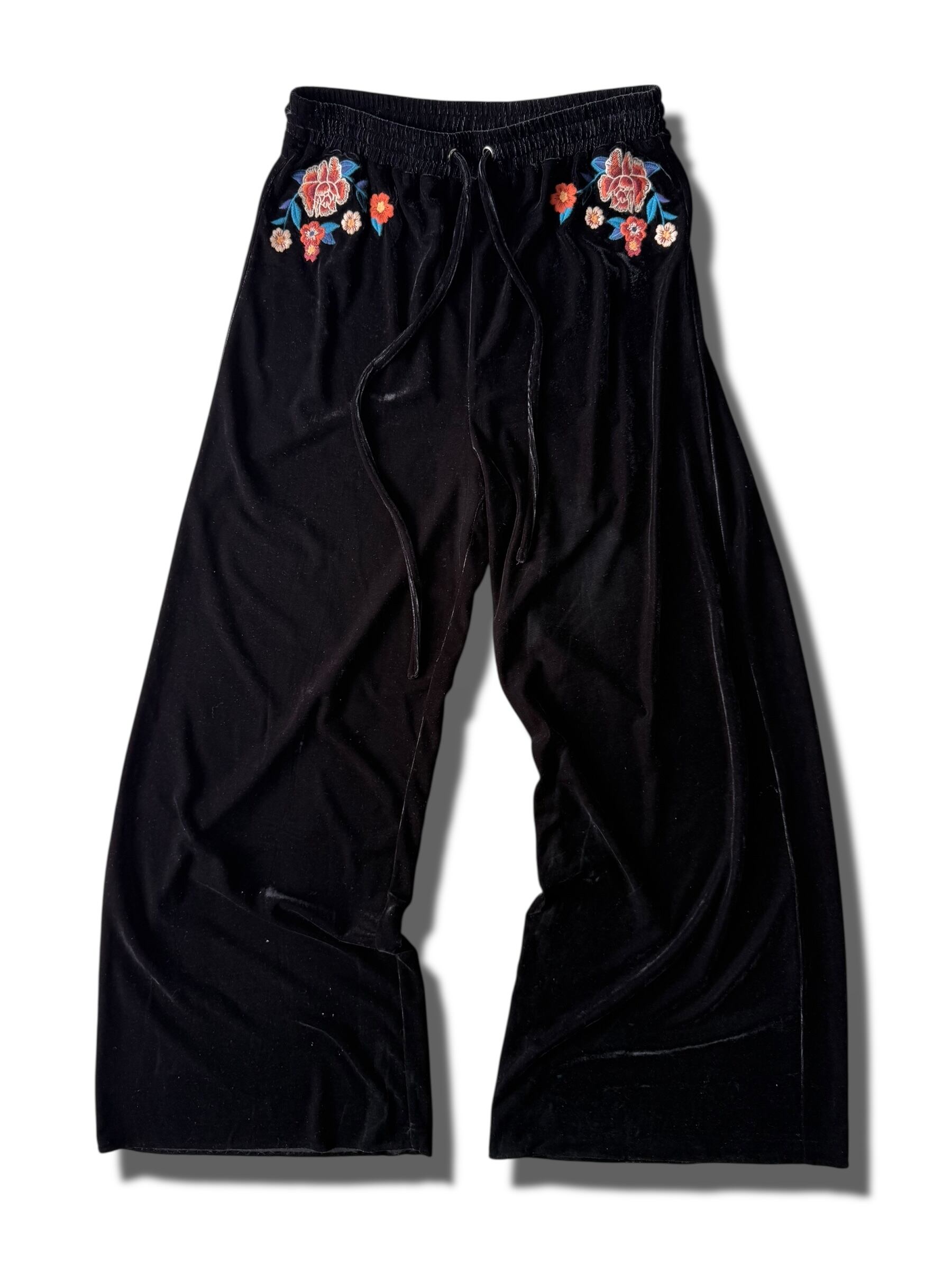 【A.calin Los angeles】"Embroidery pattern" Velvet drawstring wide pants