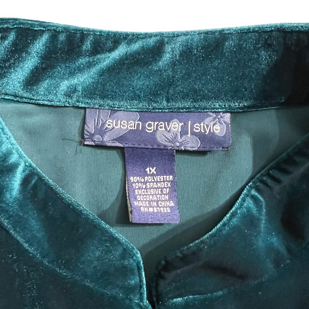 【susan graver style】bird/Flower Embroidery Design velours shirt "Emerald green"