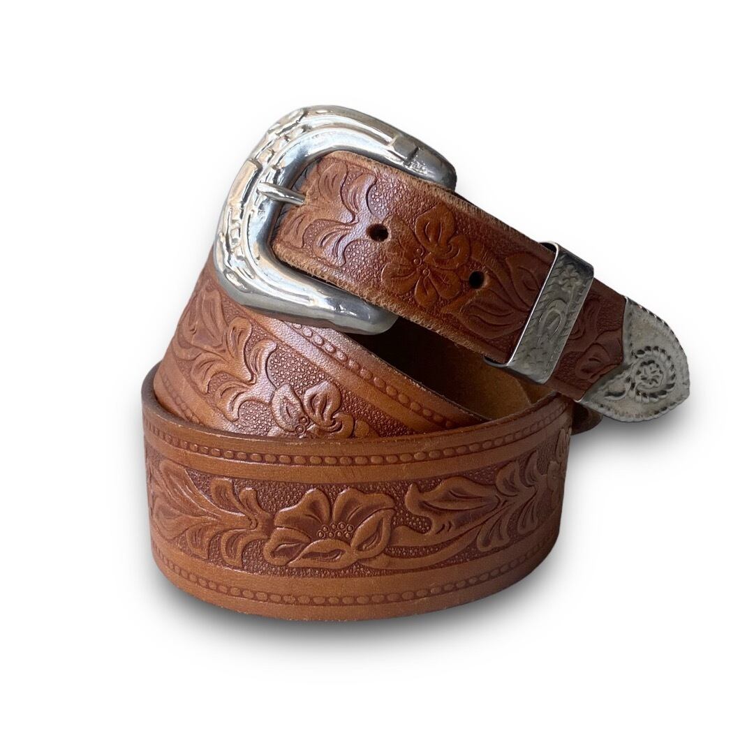 ウエスタンな気分を盛り上げてくれるヴィンテージライクな雰囲気が最高なデザインコンチョバックルのレザーベルト✨