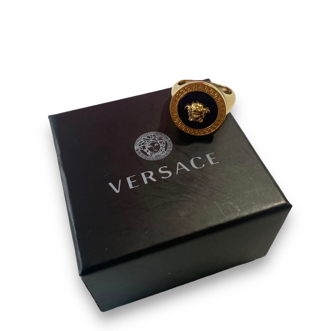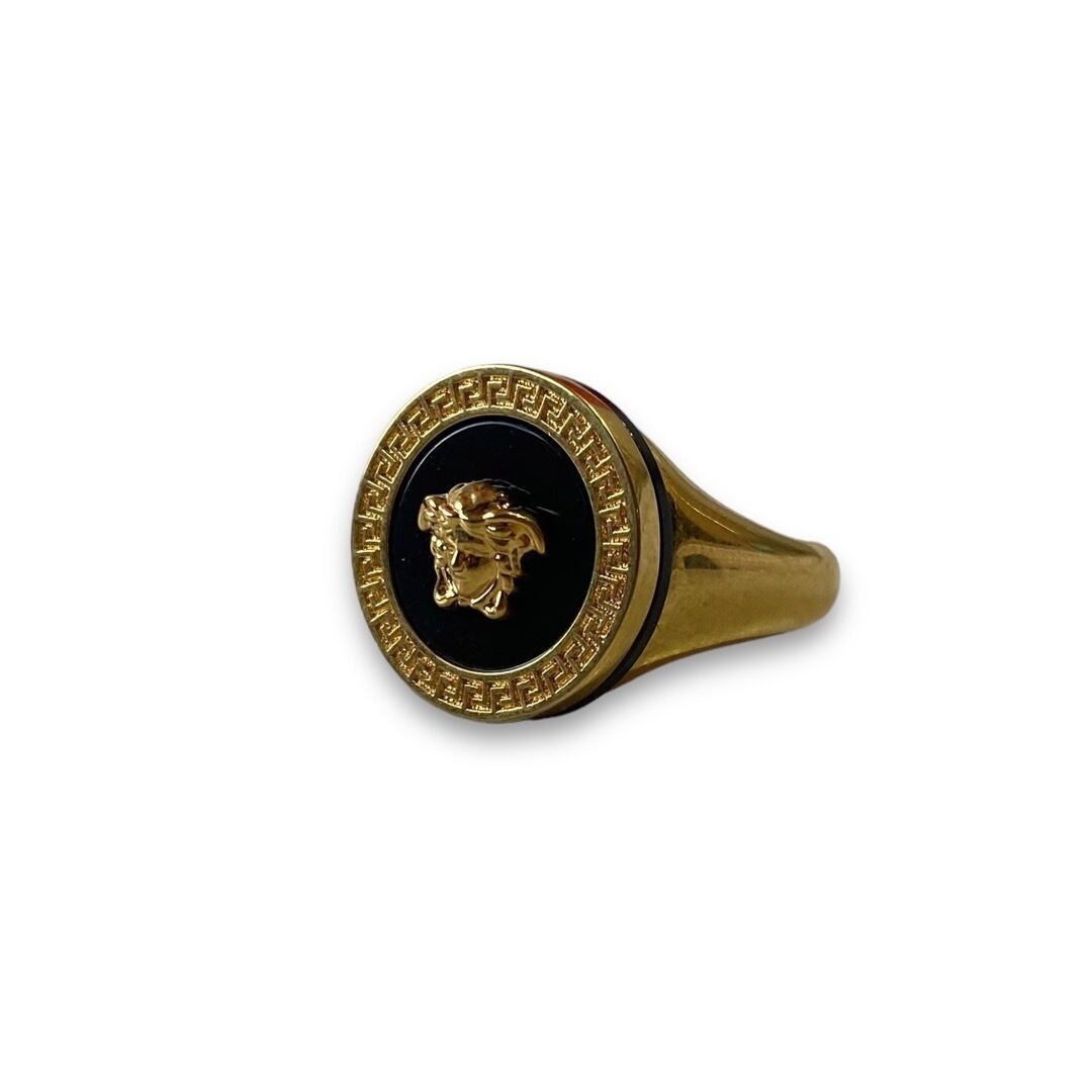 ♾️VERSACE♾️ "Greca × Medusa" Circle signet ring -Gold- MADE IN ITALY size 18号