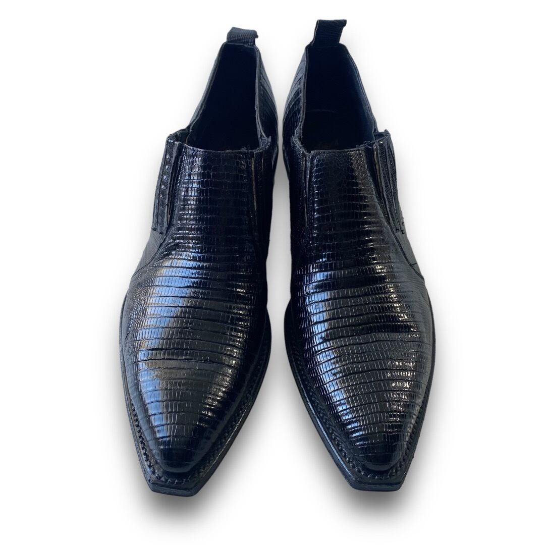 モード調な型押しデザインが超イカすレザーヒールシューズ!!