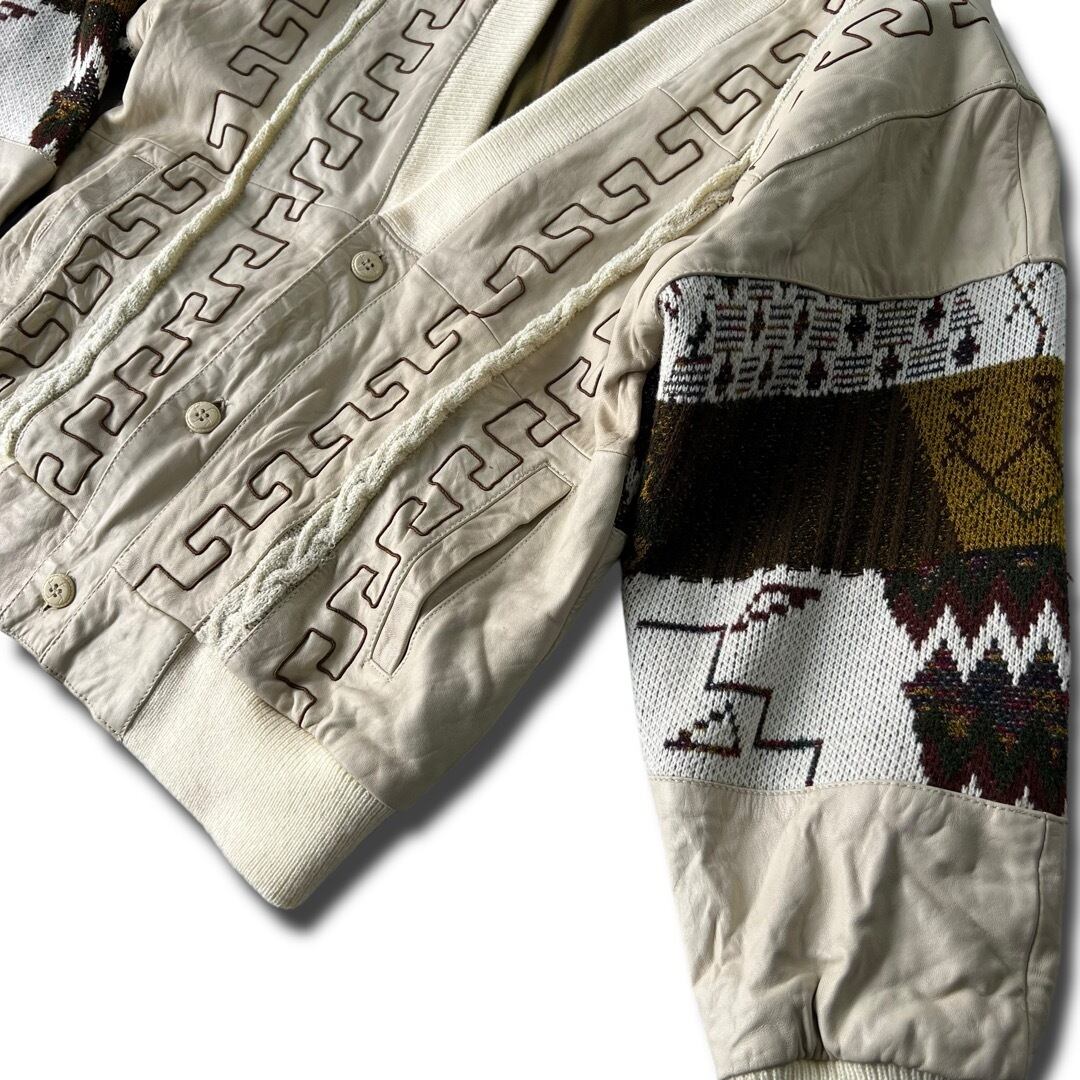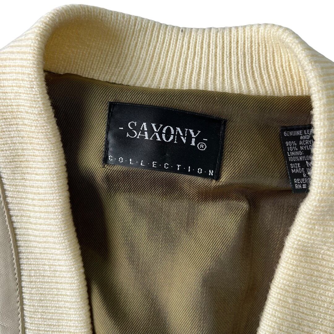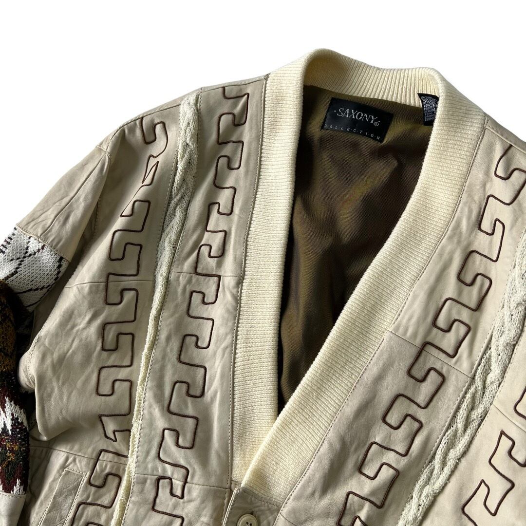 【SAXONY】 Leather combination design knit cardigan blouson