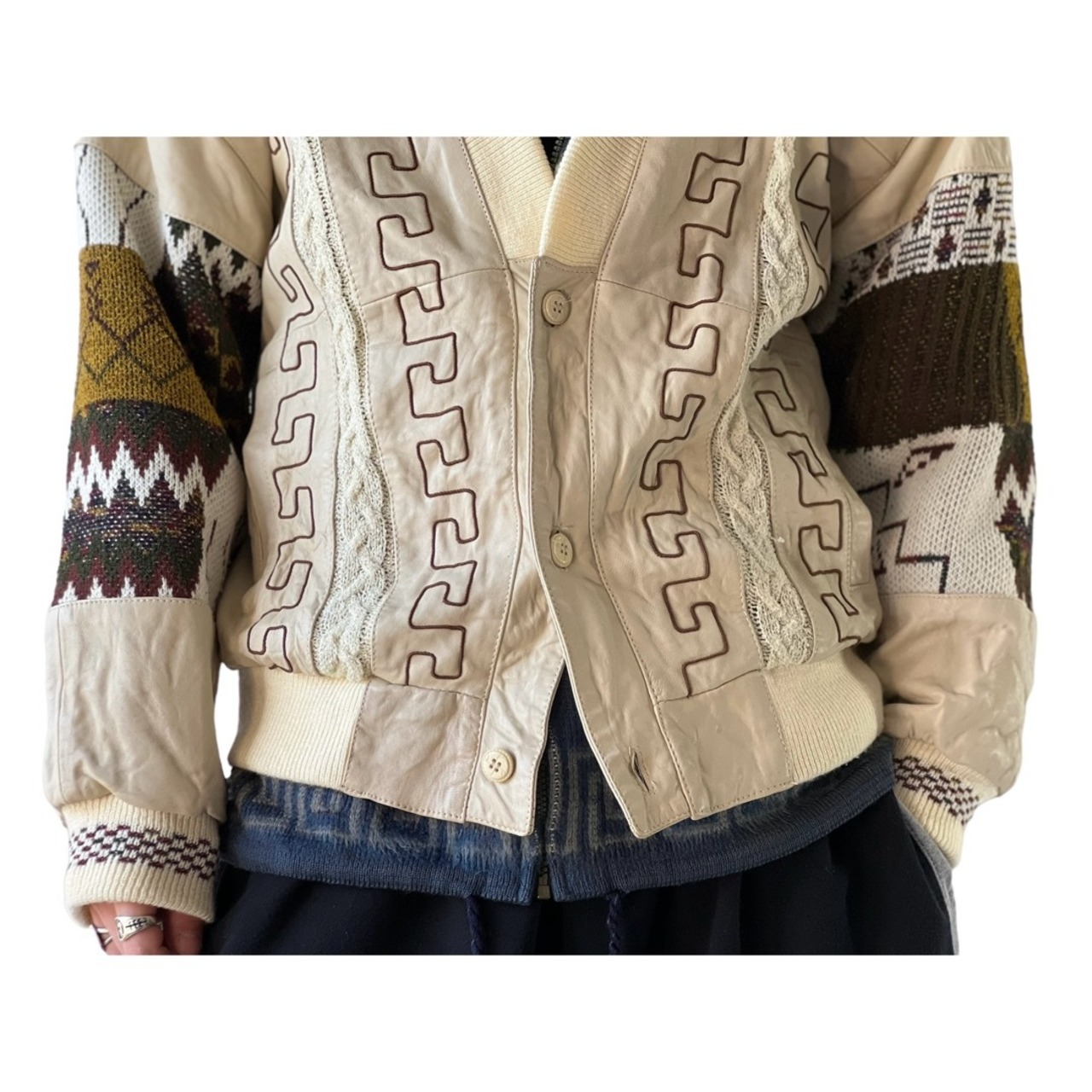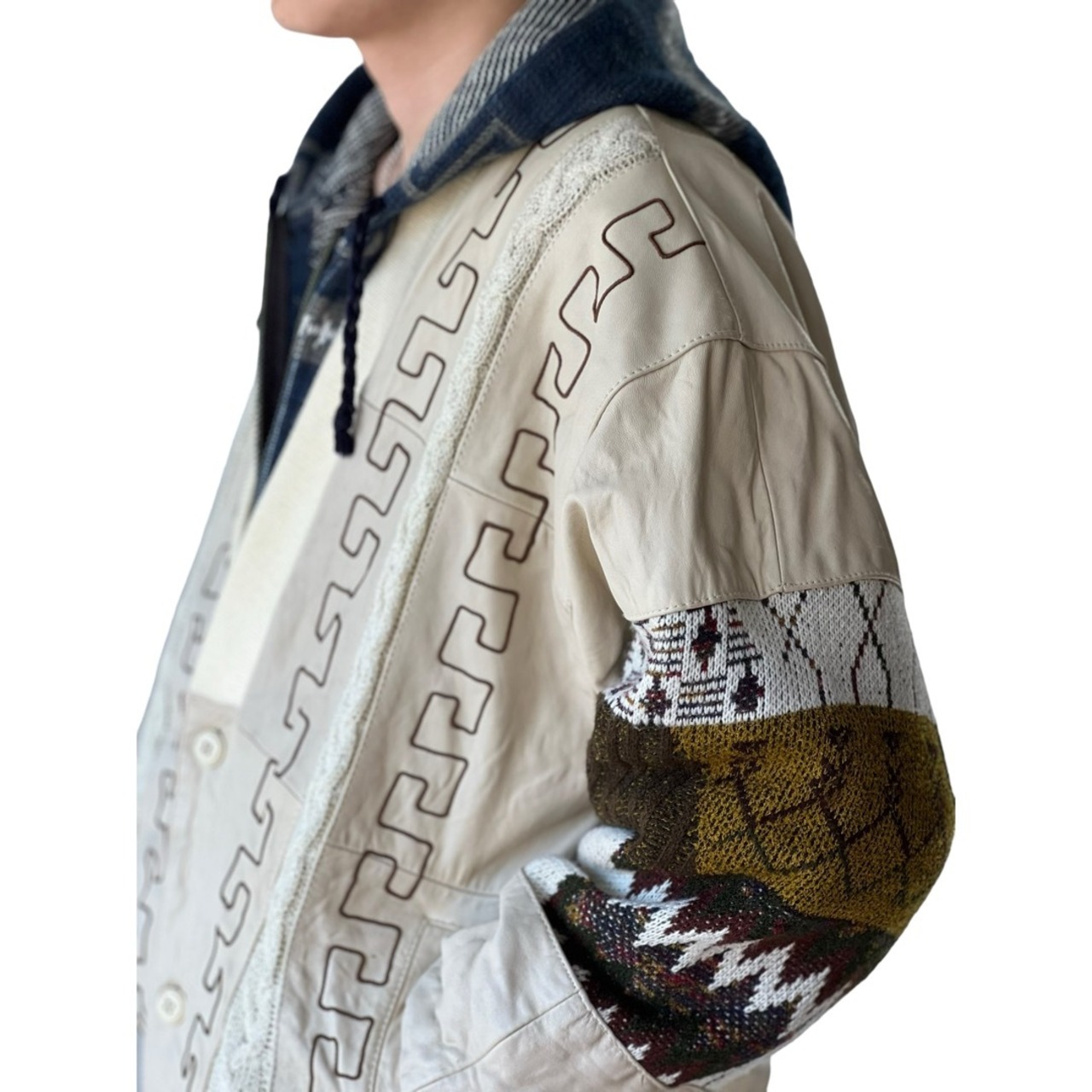 よりアウターとして重宝できる特徴的なレザーをコンビネーションしたデザインがオリジナリティ溢れる1着◎