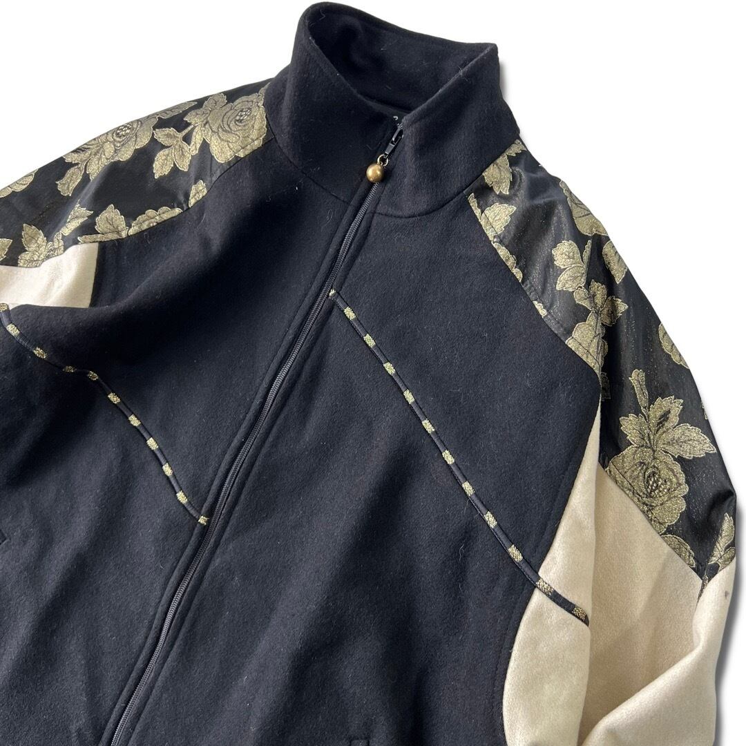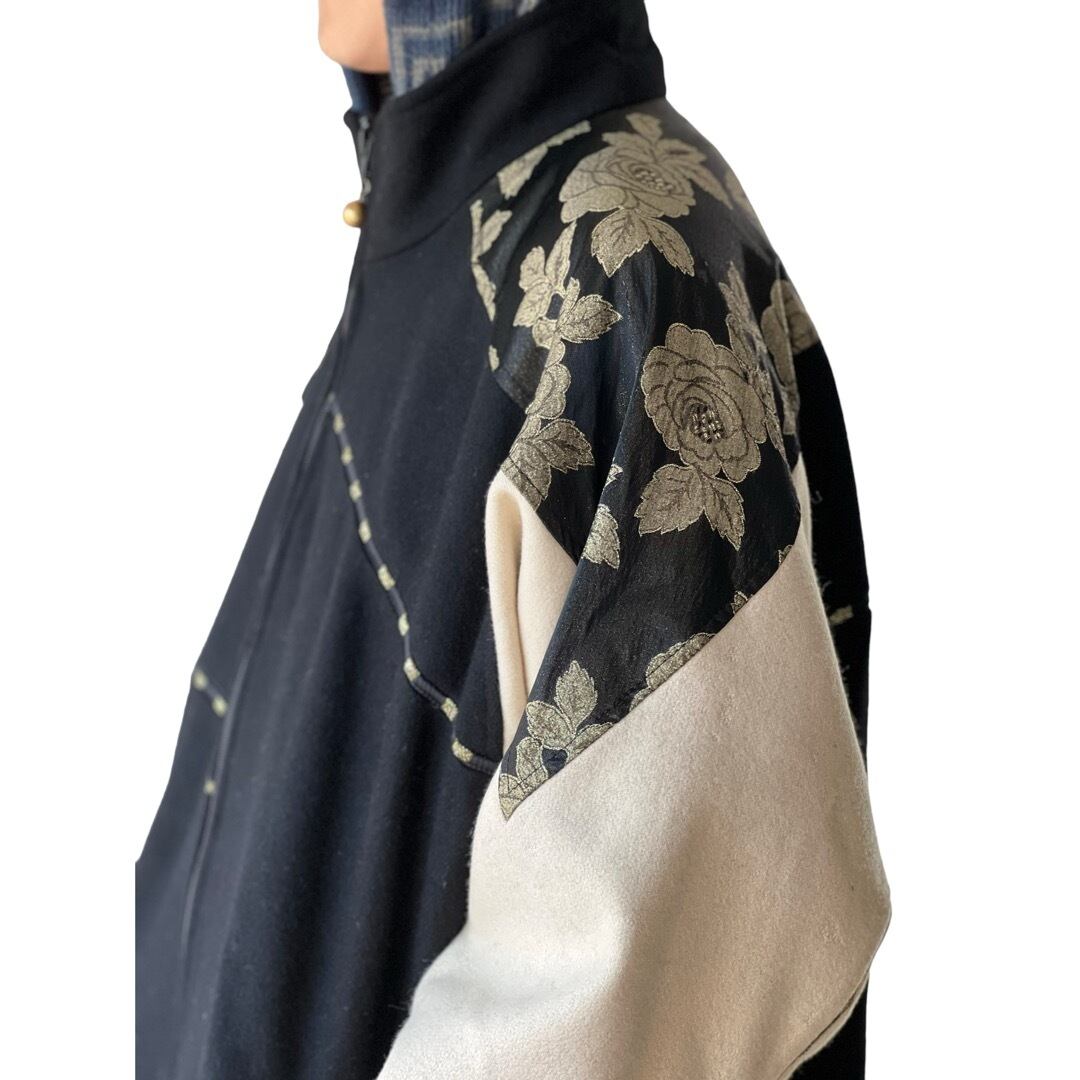 【80's Lady Suzette】swiching design pattern Stand neck Wool Long Blouson