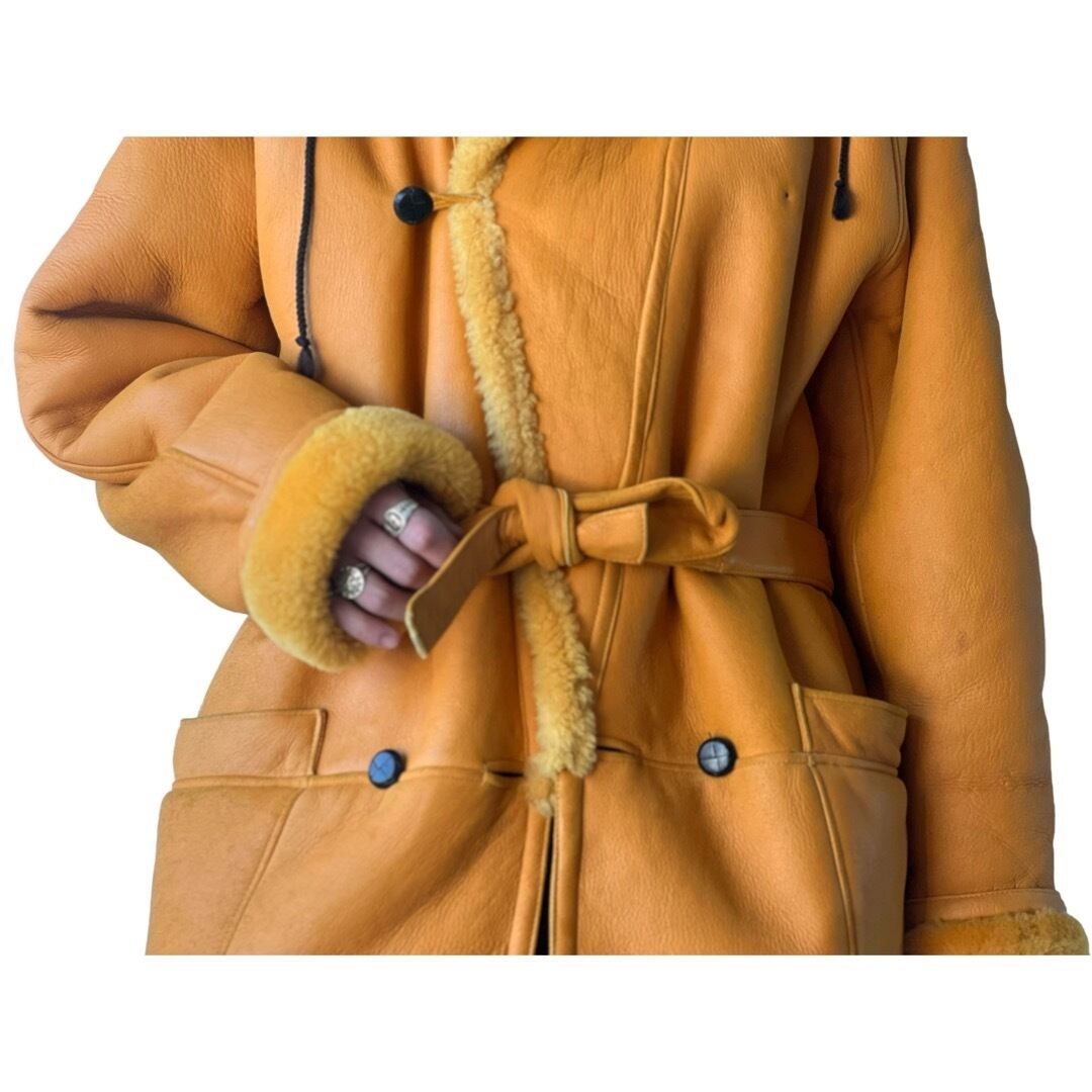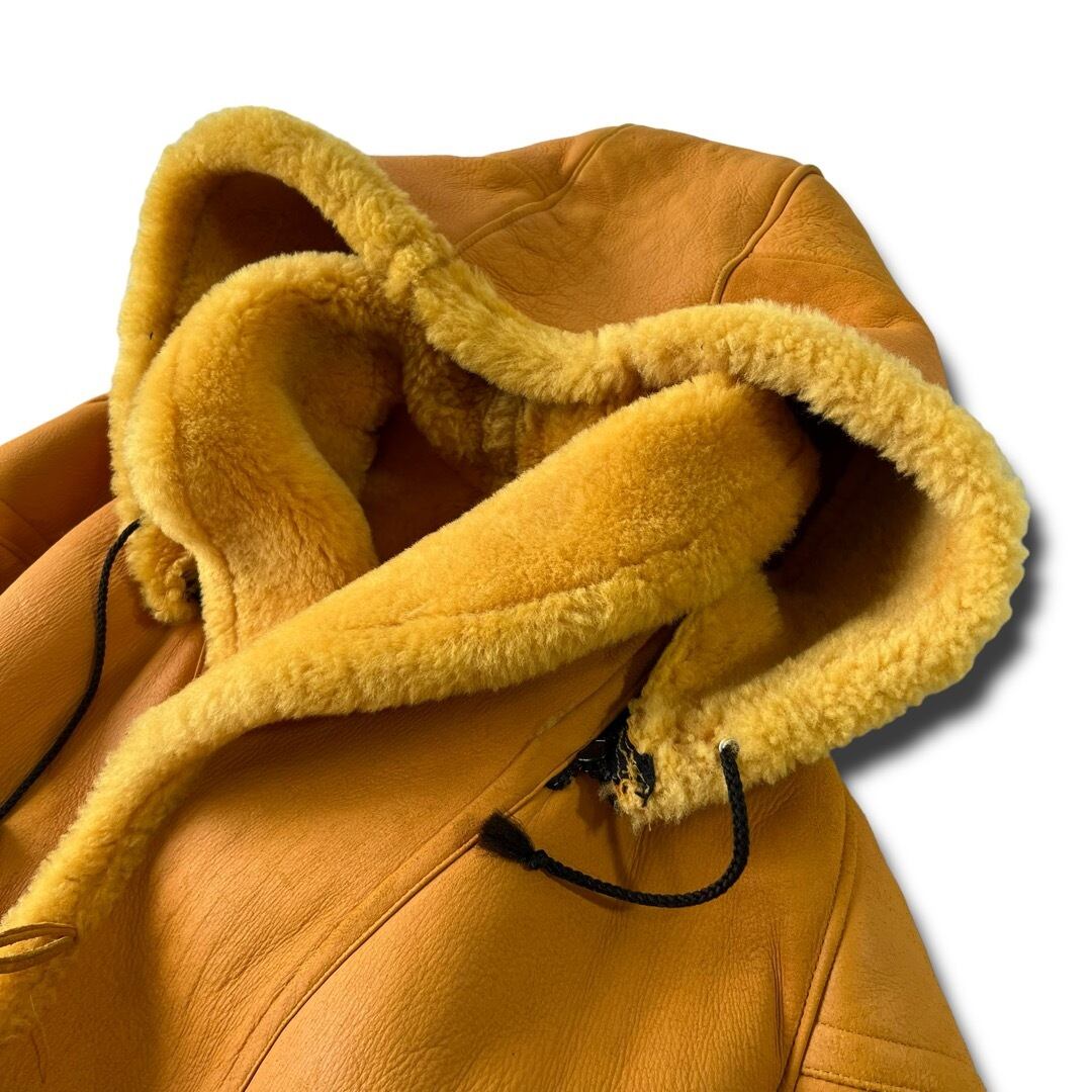 【H.M】 Vintage leather fooded sheirling coat "yellow"
