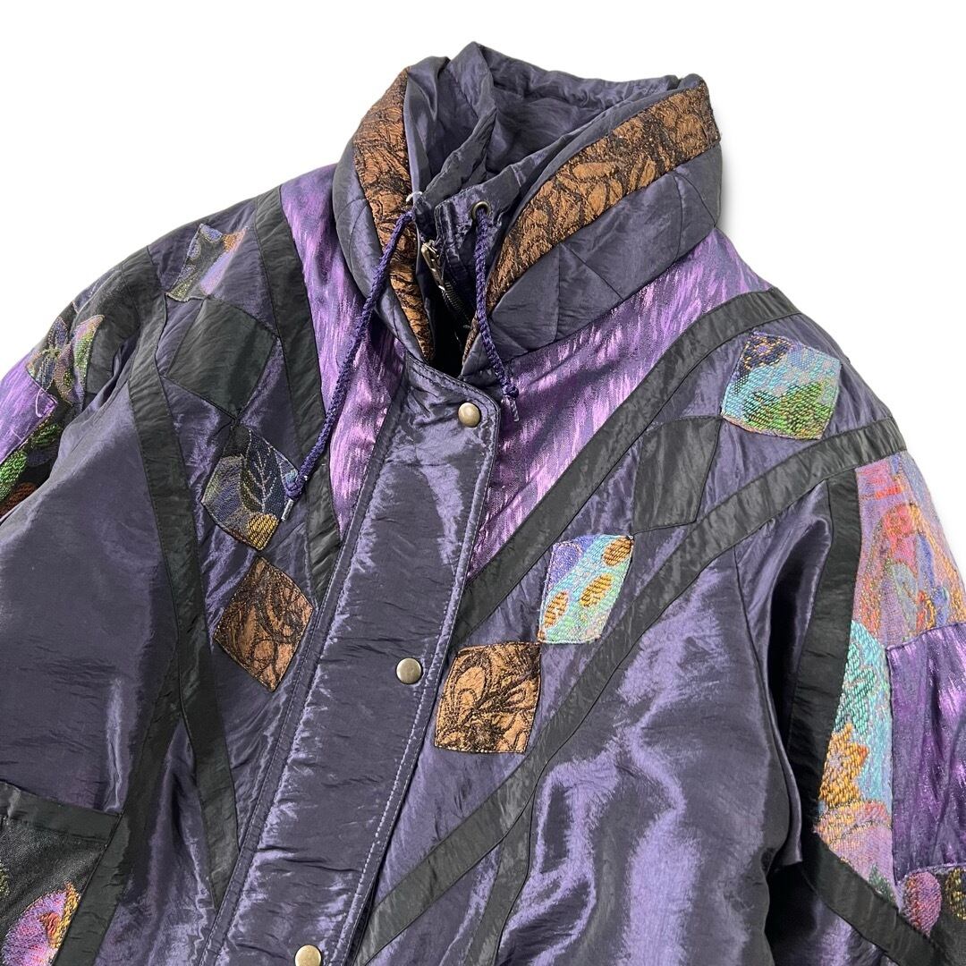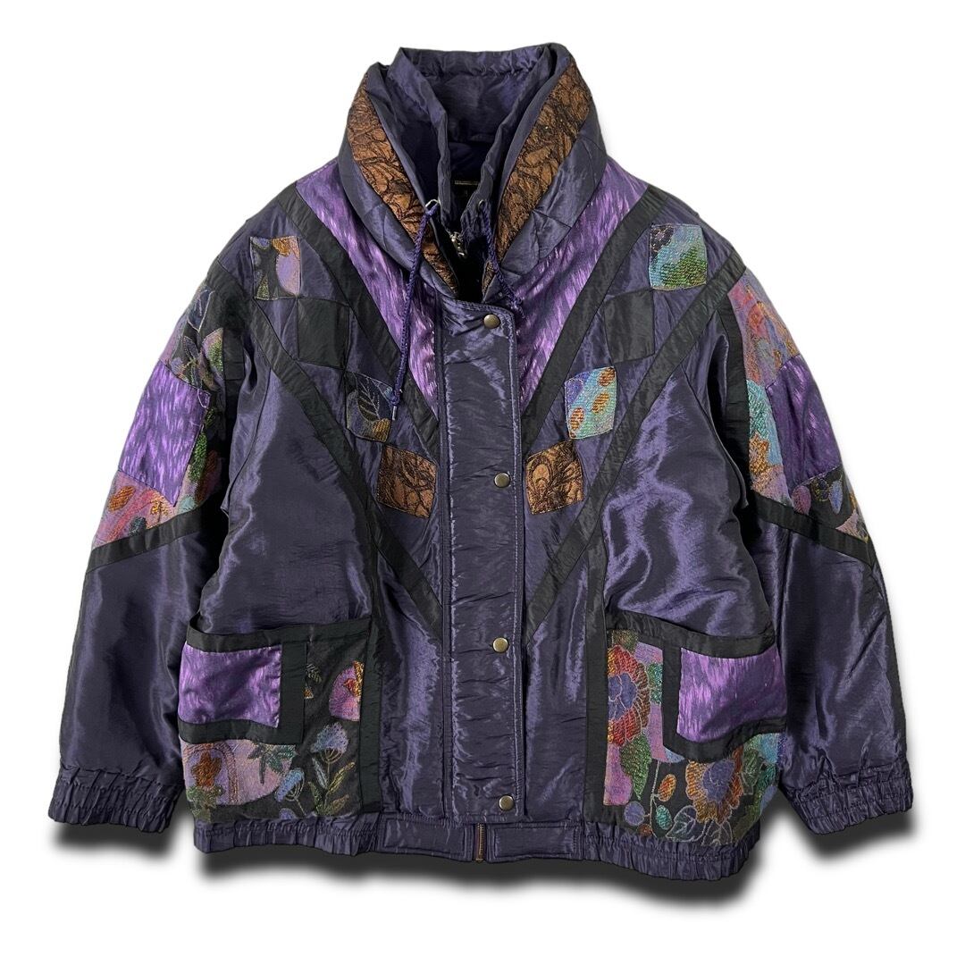 艶感のあるパープルベースに様々な柄と生地で、稀有な柄、素材を贅沢に使用し、絶妙なバランスで切り替えを施したジャケット❗️