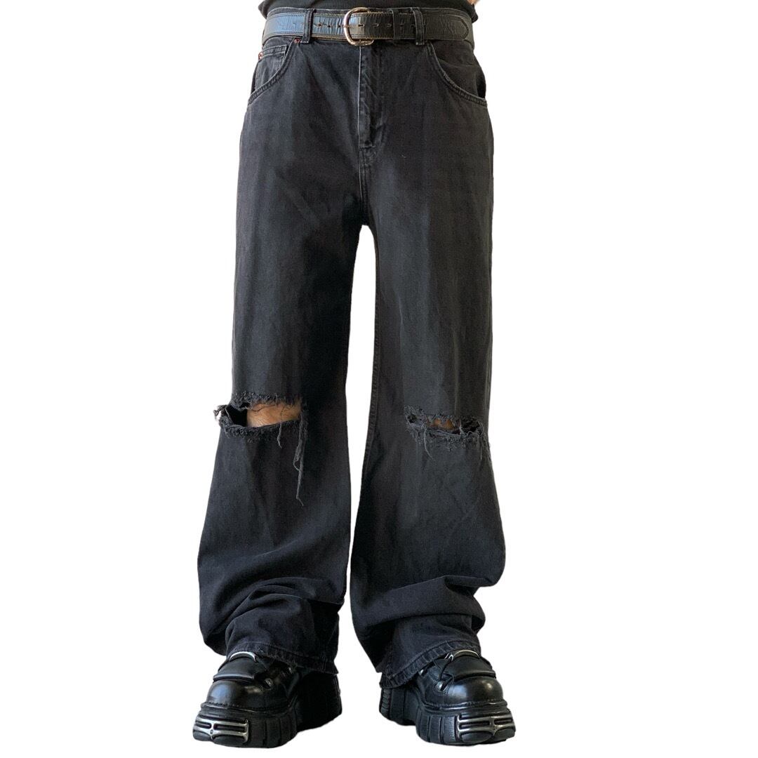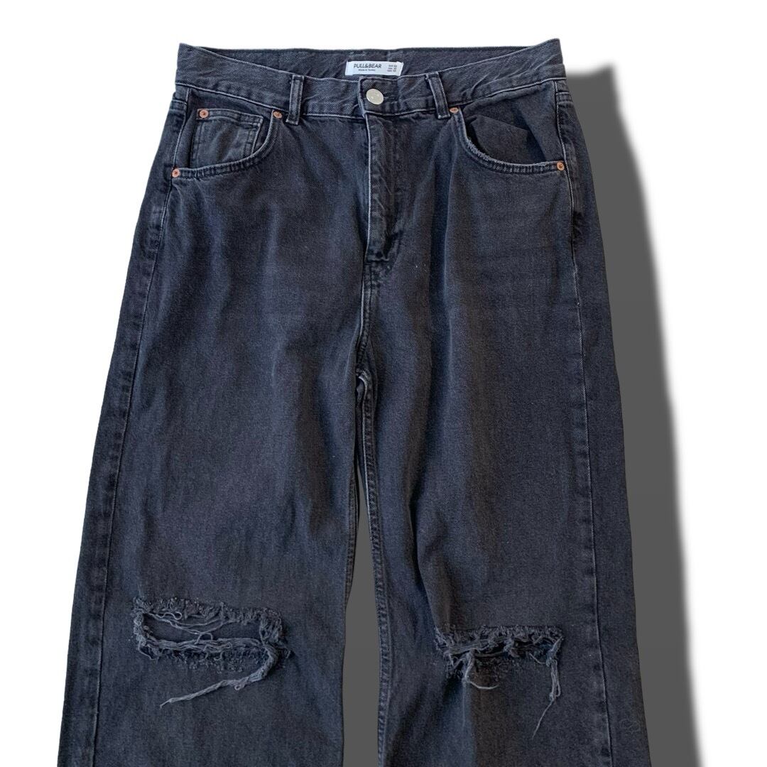 ♾PULL&BEAR♾ crushed design wide straight fade black denim pants