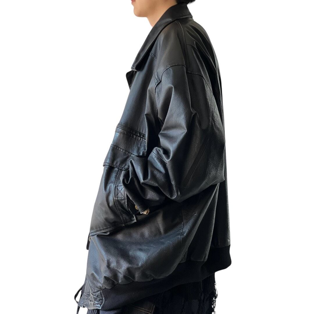 【KINGSIZE】 Special Leather flight jacket -size: 4XL