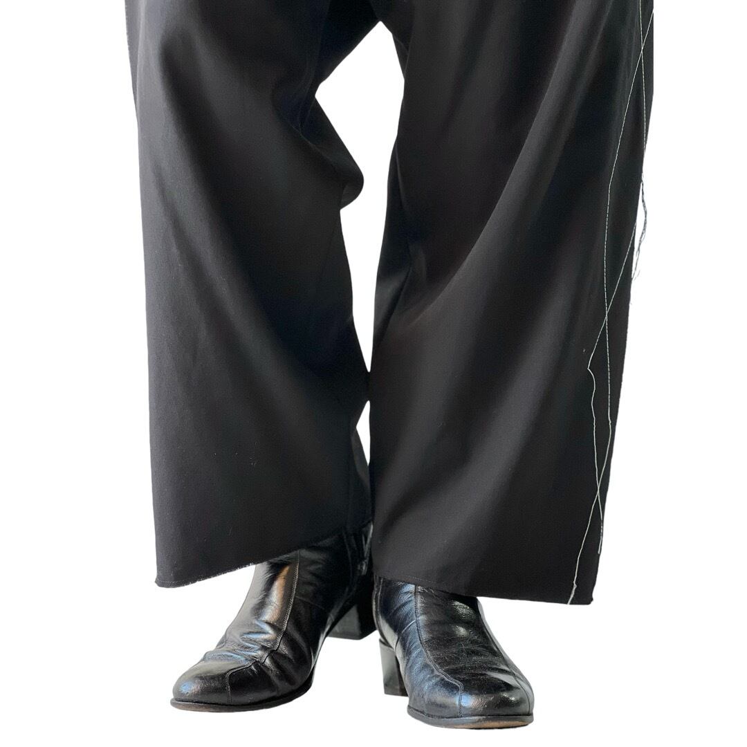ブランドらしいスペシャルメガワイドなシルエットにステッチや断ち切りのデザイン。