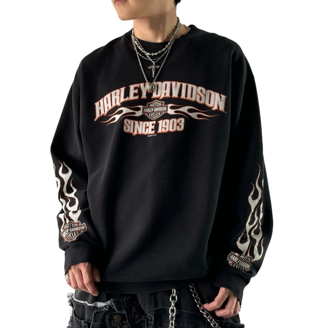 ♾00's HARLEY-DAVIDSON♾ ©️2007 H-D fire logo design sweat