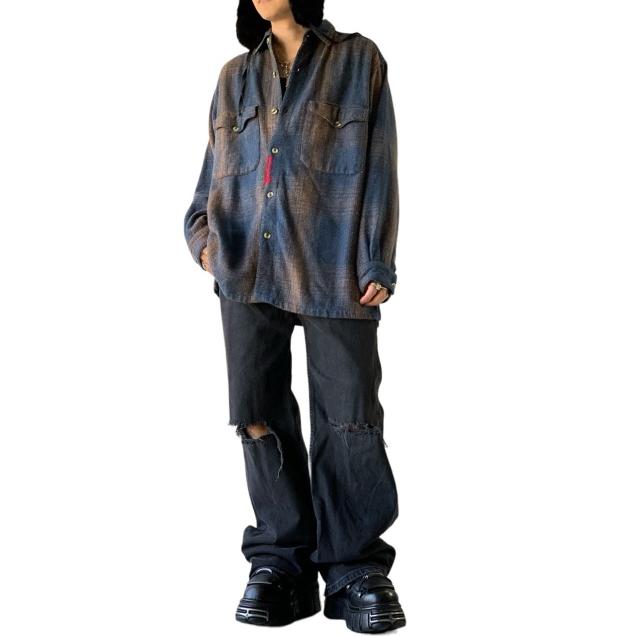 ♾PARAGRAFF♾ hand stitch design check patterned L/S shirt sizeL