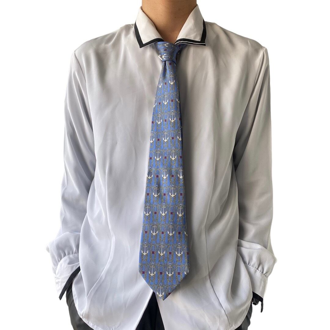 チェーンと碇のモチーフにココマークが混じる高級感溢れるデザインがステキなシルクネクタイ!!!
