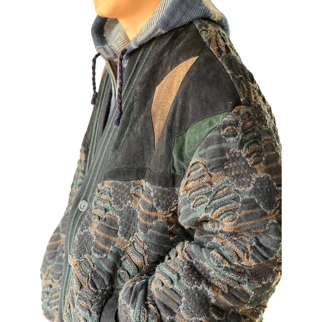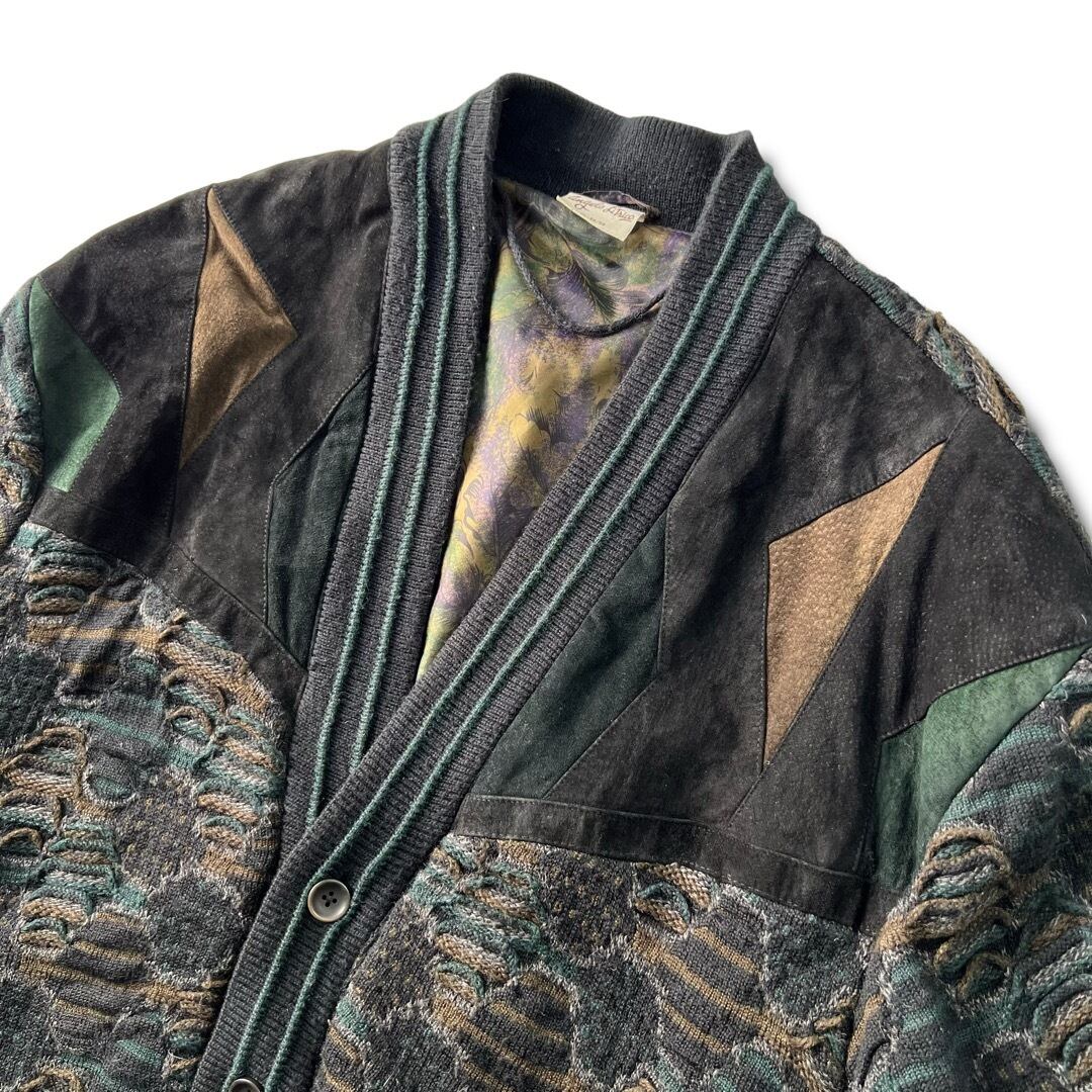 スウェードレザーコンビネーションデザインのカーディガンブルゾン。