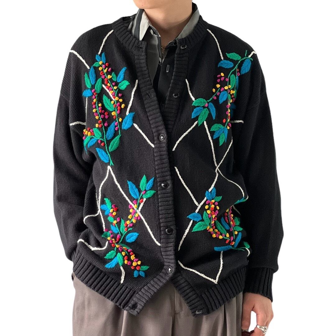 【I.B. DIFFUSION】1990's Flower decoration pattern Design knit cardigan