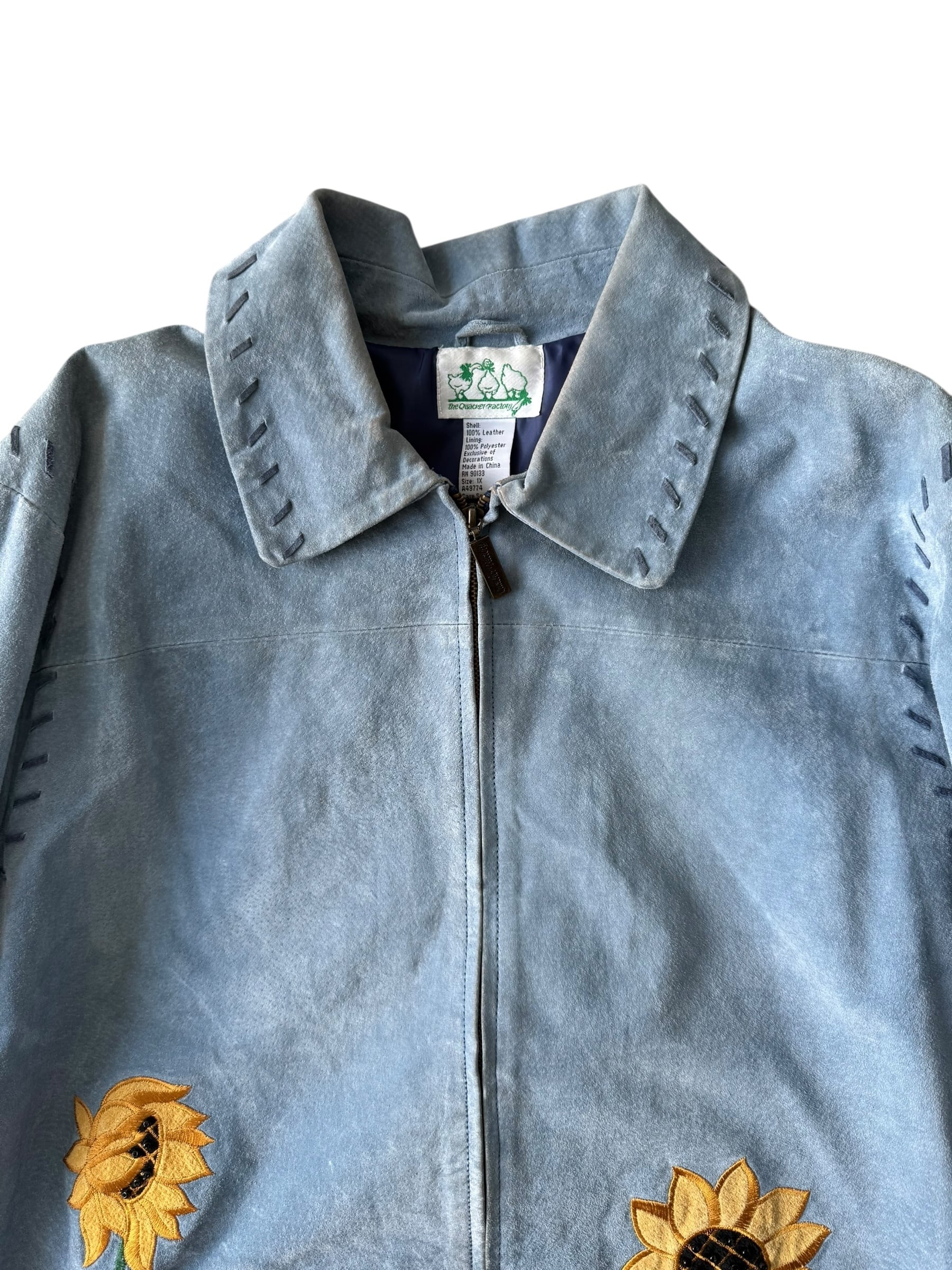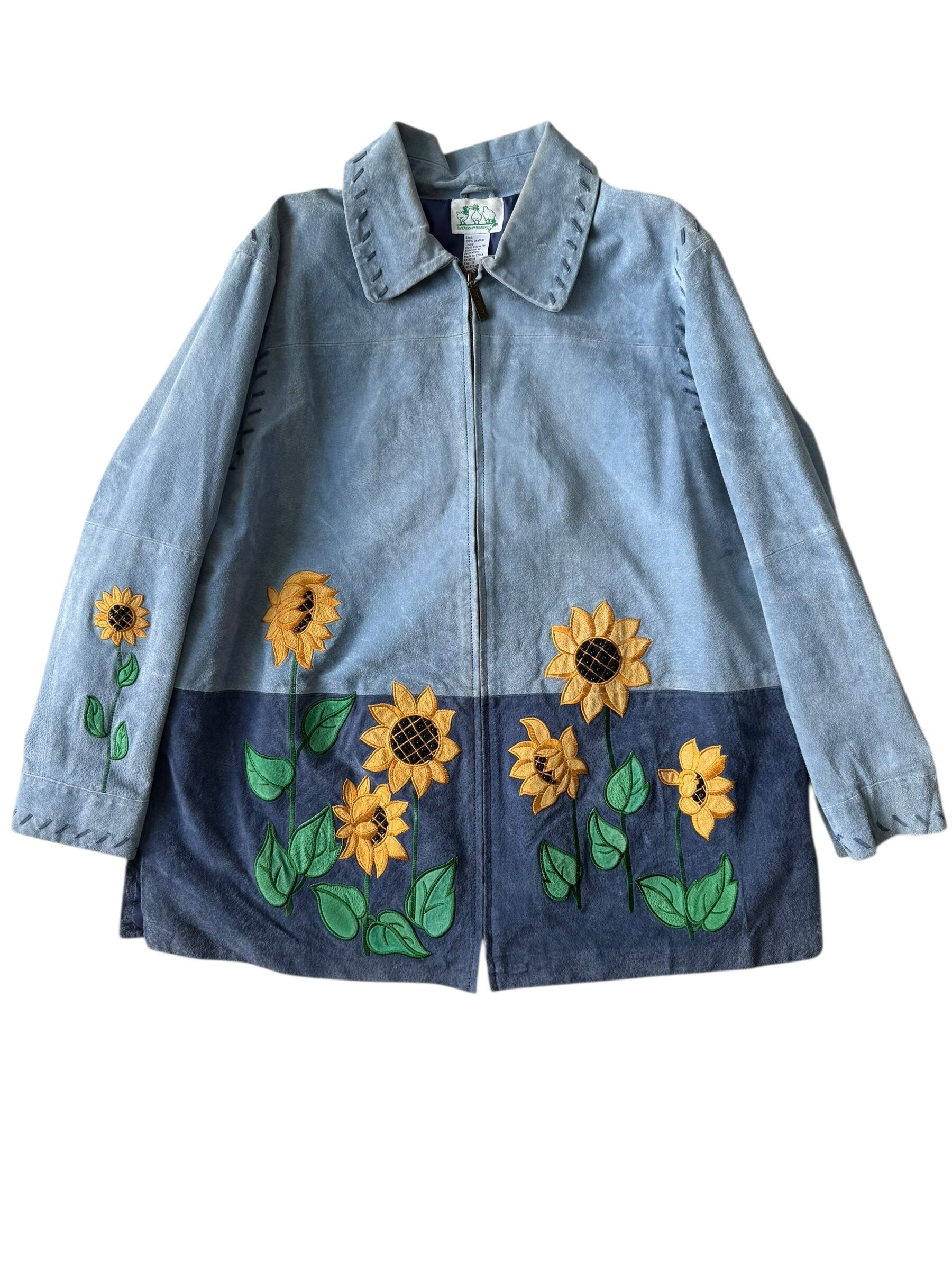 Sunflower embroidery design suede jacket