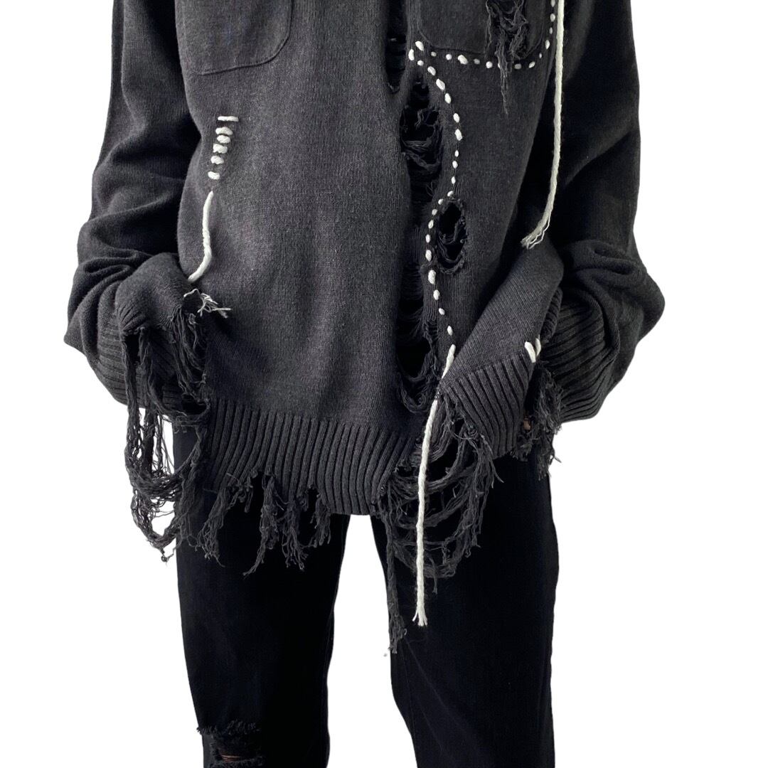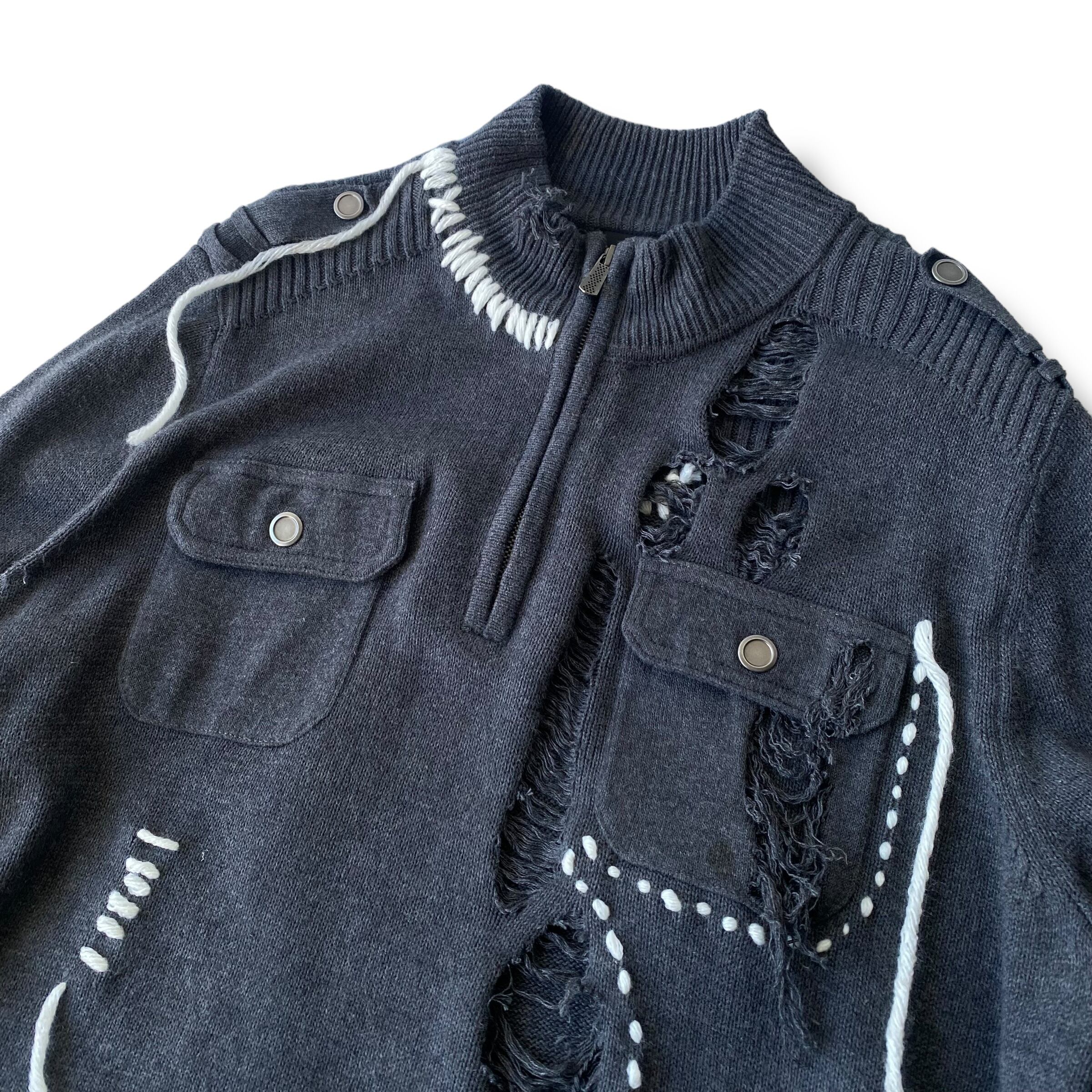 ハンドステッチ×クラッシュ加工のスペシャルデザインがインパクト抜群なハーフジップニット!!!