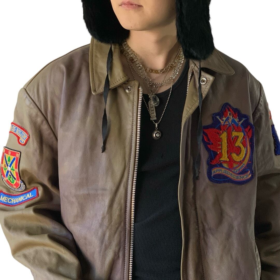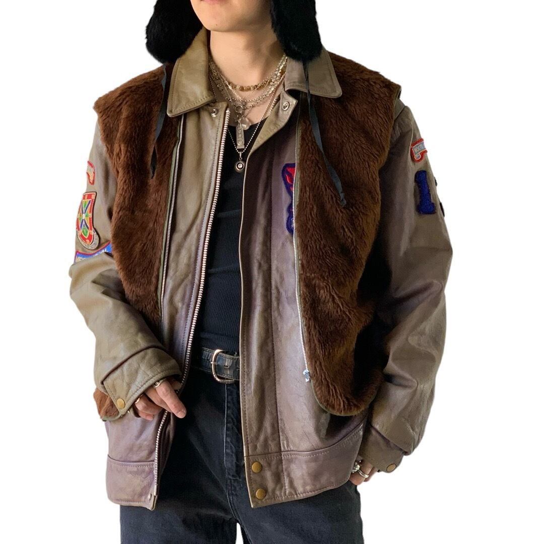 フロント両袖背面のフルデコデザイン◎配色も上等で非常に目を引く1着!!!無骨でクールな重厚感のあるレザーが存在感ばっちりで1枚羽織ってコーデの主役に!