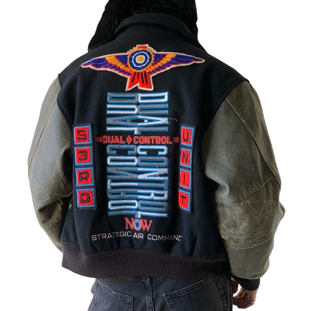 ♾DUAL CONTROL♾ leather switching design short length varsity jacket