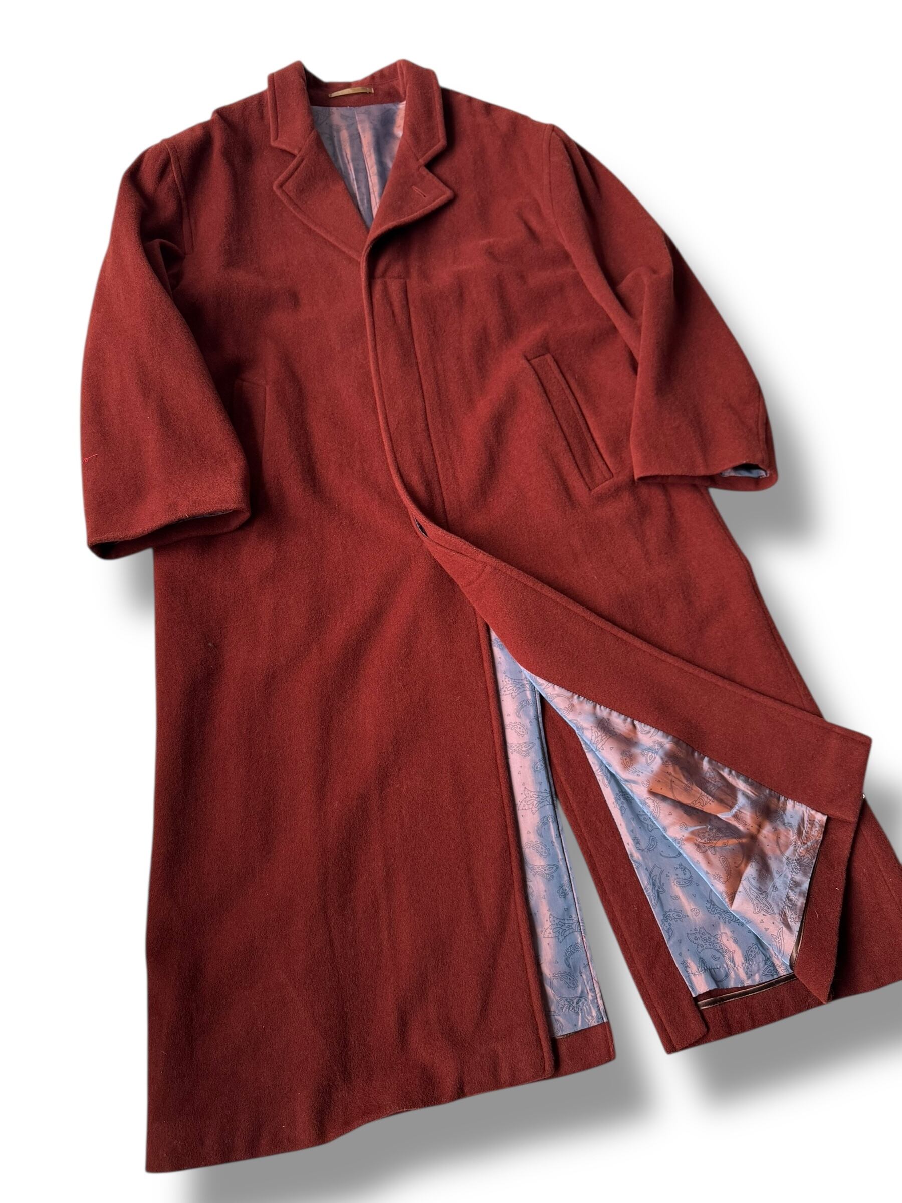 カシミアを混ぜた柔らかく触り心地の良い上質な生地感にレンガ色のこの時期馴染むカラーリング、ペイズリー柄をプリントしたタマムシカラーの裏地と抜群なお洒落さを誇るスペシャルコート♡