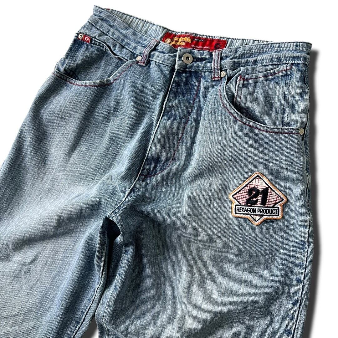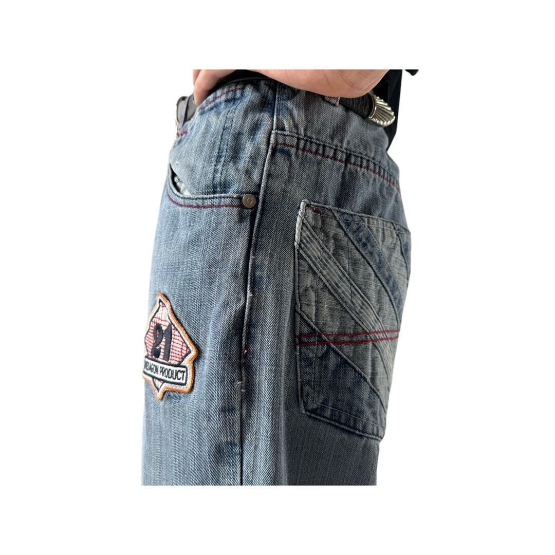 程よく緩いシルエットと、ワンポイントで施されたパッチが魅力的なデザインルーズフィットデニム。