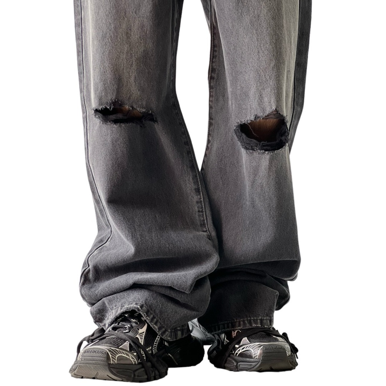Fade Black wide straight crush denim pants
