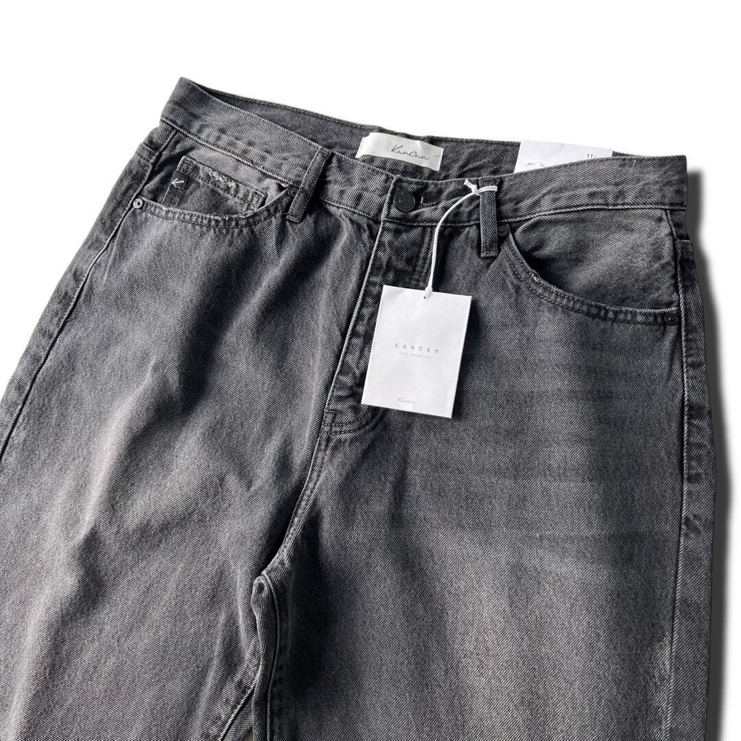 【KanCan】 Fade Black wide straight crush denim pants