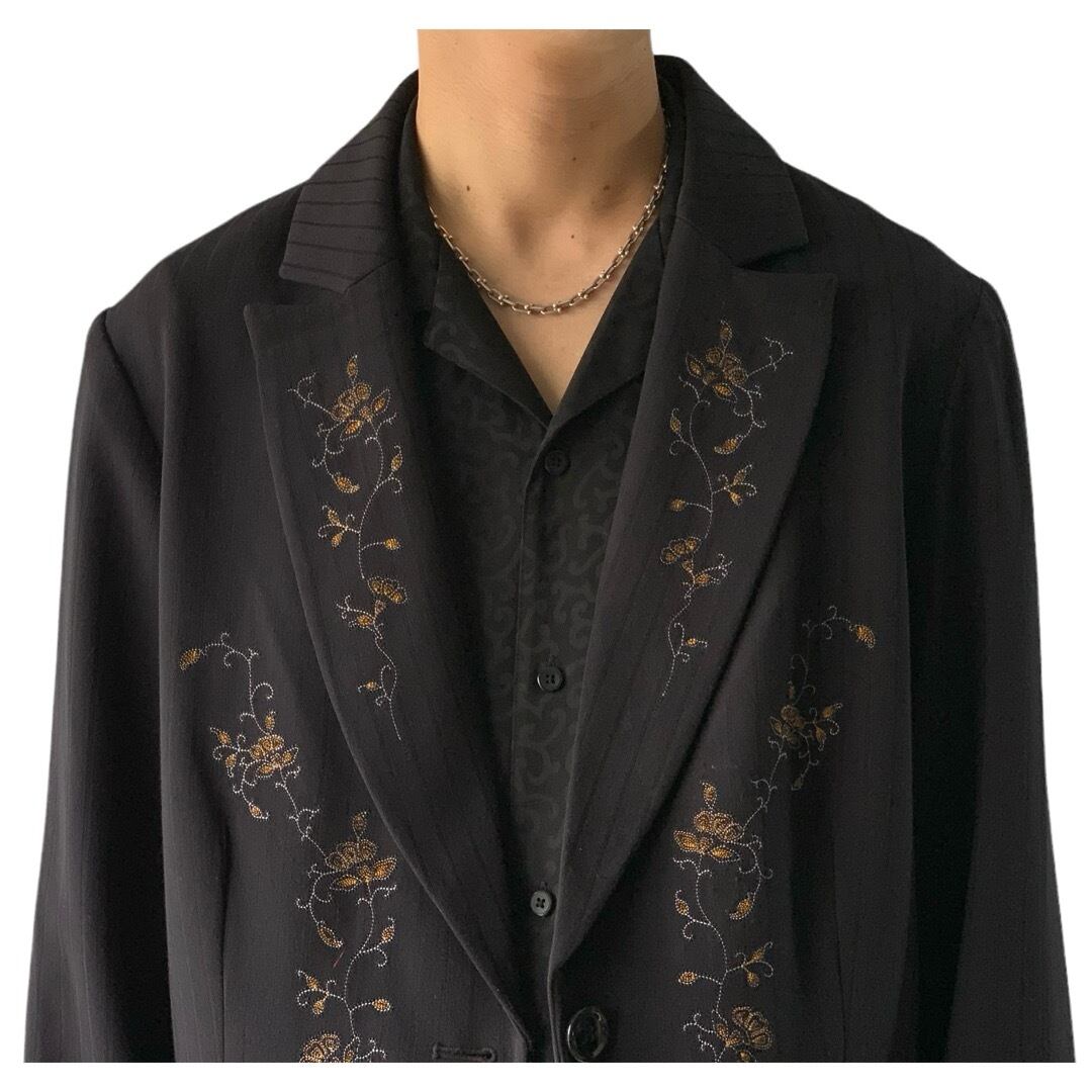 フロントに左右対称のバランスの良い花刺繍が特徴的なデザインジャケット。