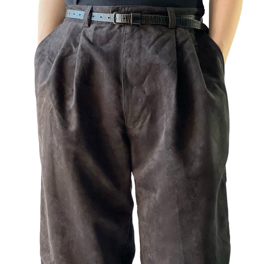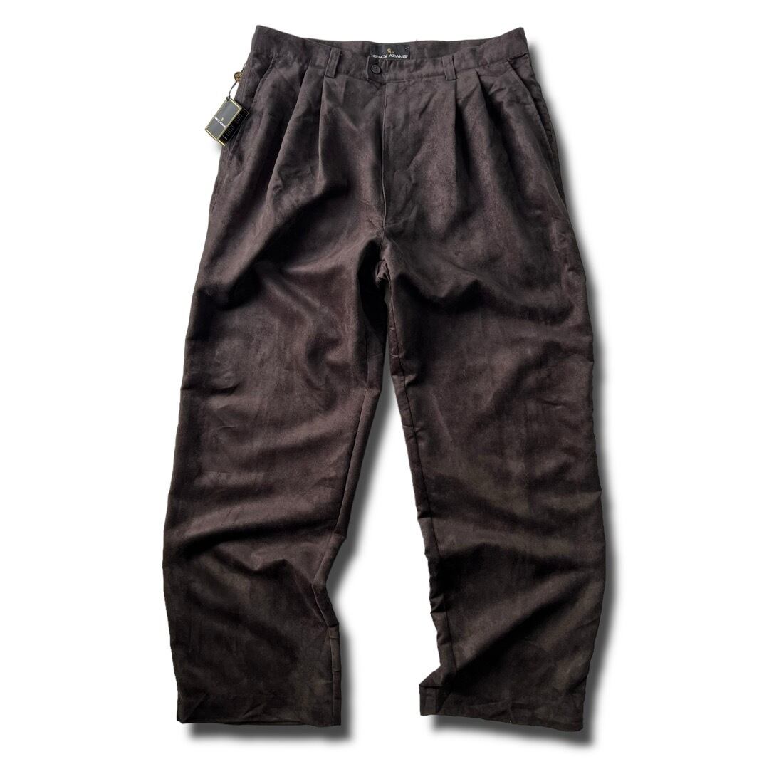 【STACY ADAMS】Fake suede tuck wide slacks -Smoky Black-