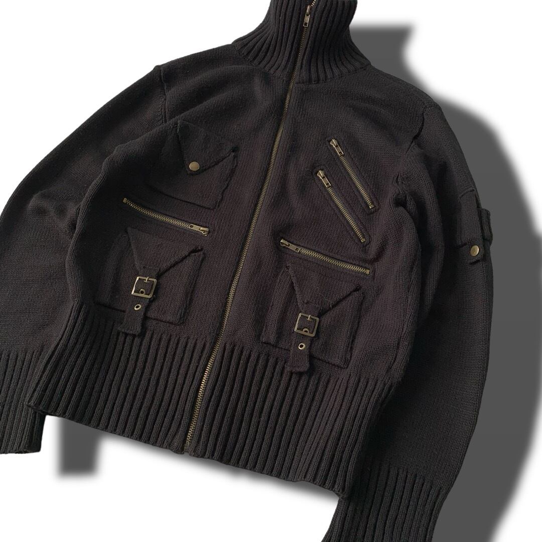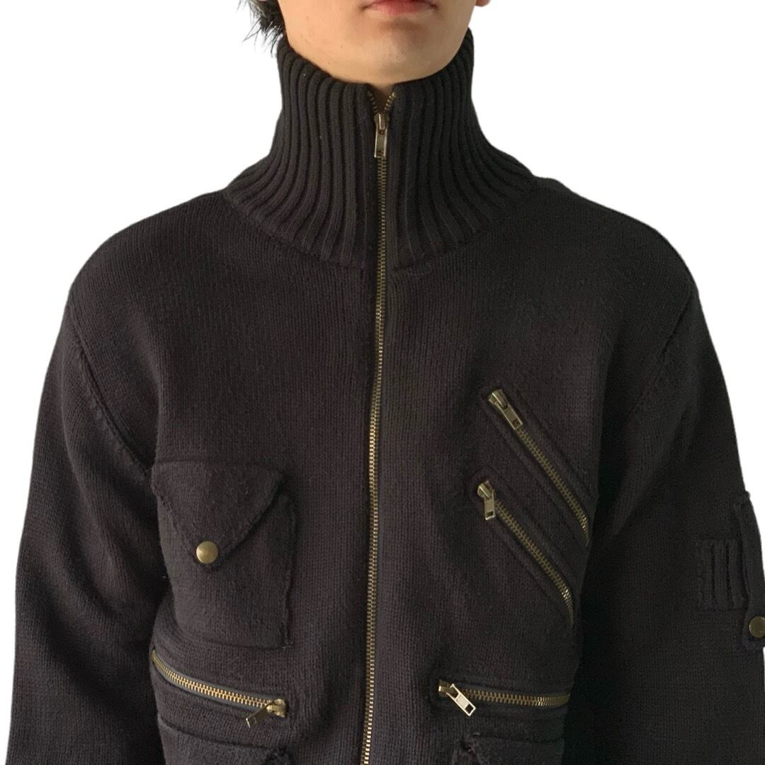 ジップやバックル等のフロントのディテールが特徴的なデザインドライバーズニット✨