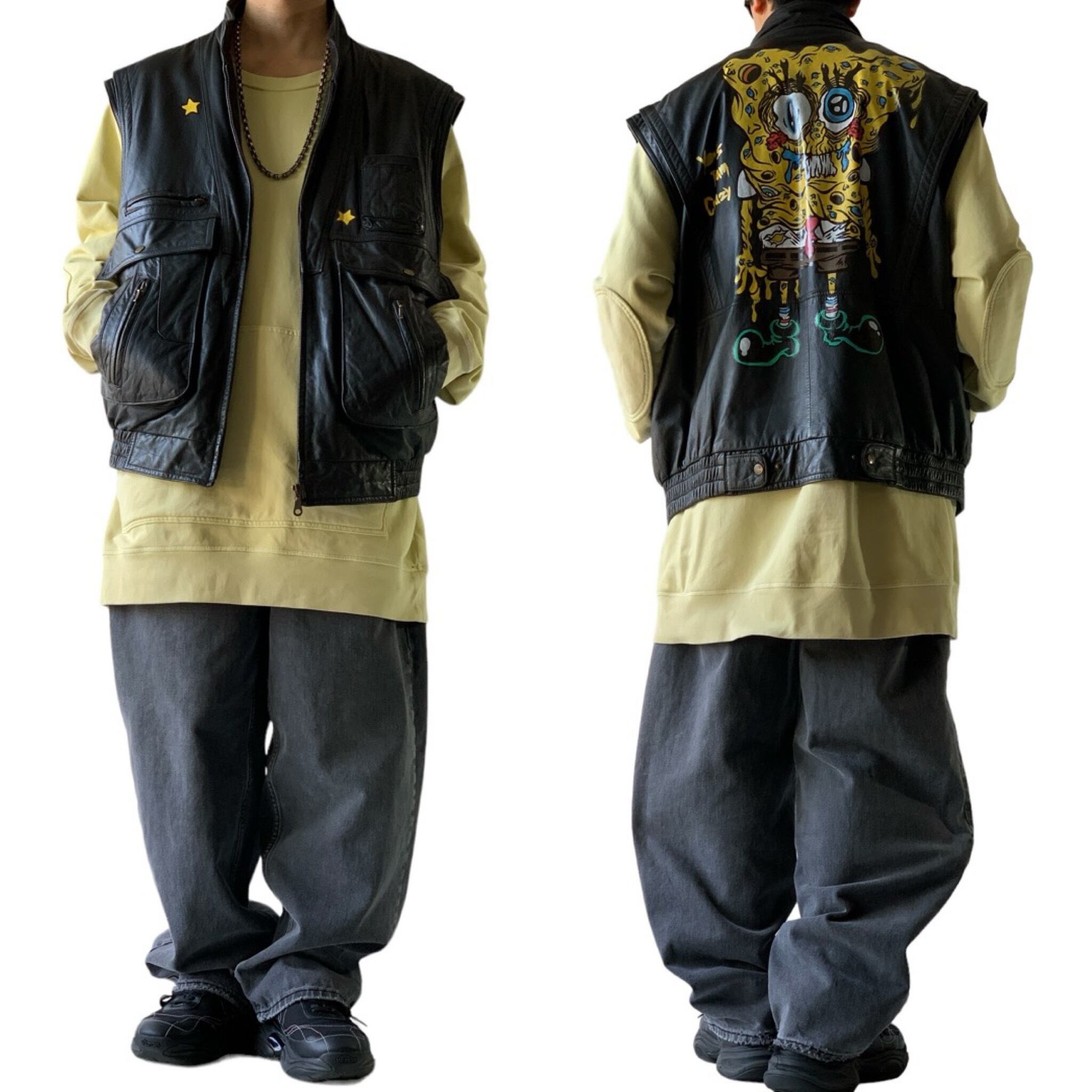 ダークサイドに闇堕ちしたボブ氏のインパクト抜群ハンドペイントデザインが目を引くレザーベスト!!!