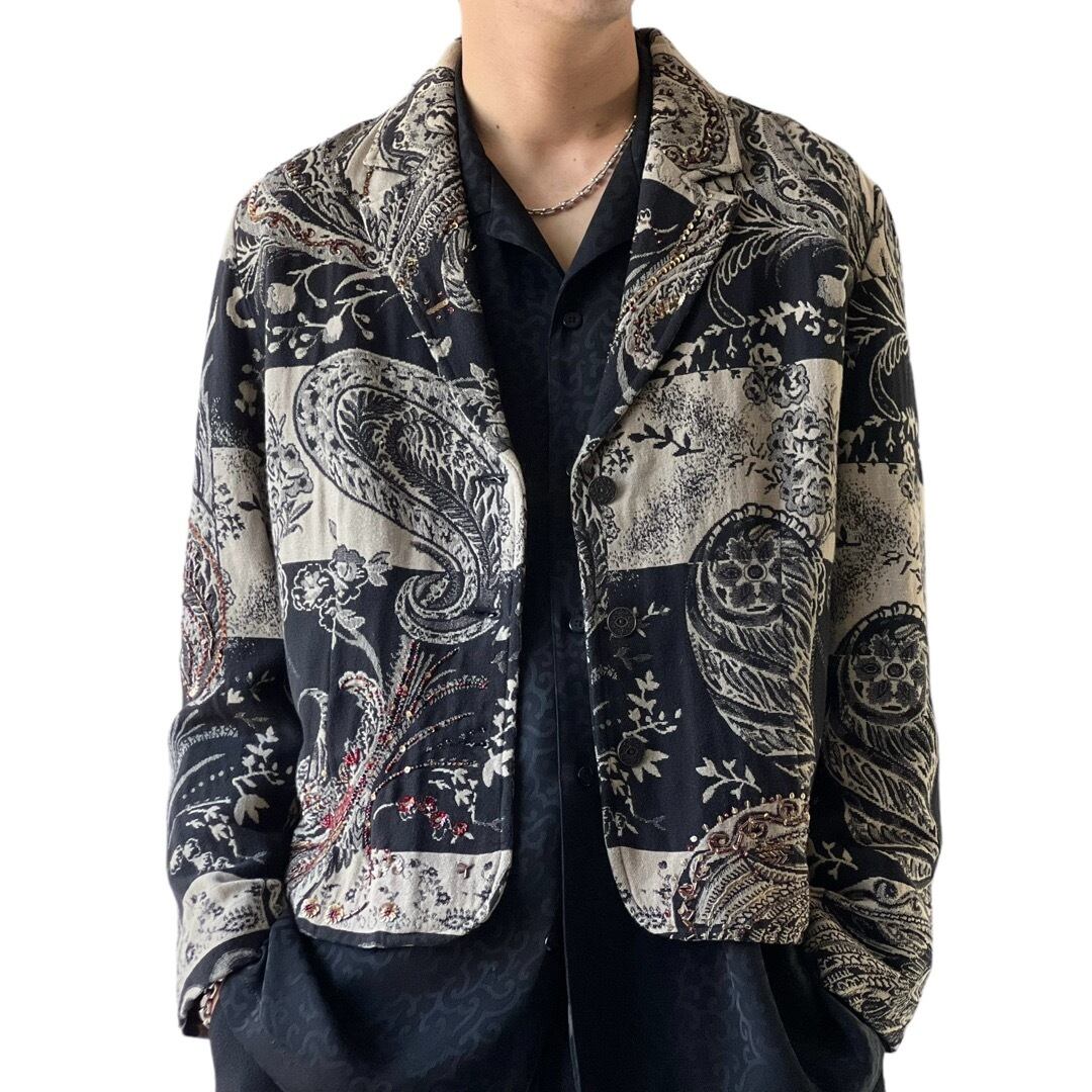 落ち着いた色味の総柄デザインに要所要所で取り入れられたスパンコールやビーズがアクセントに◎
