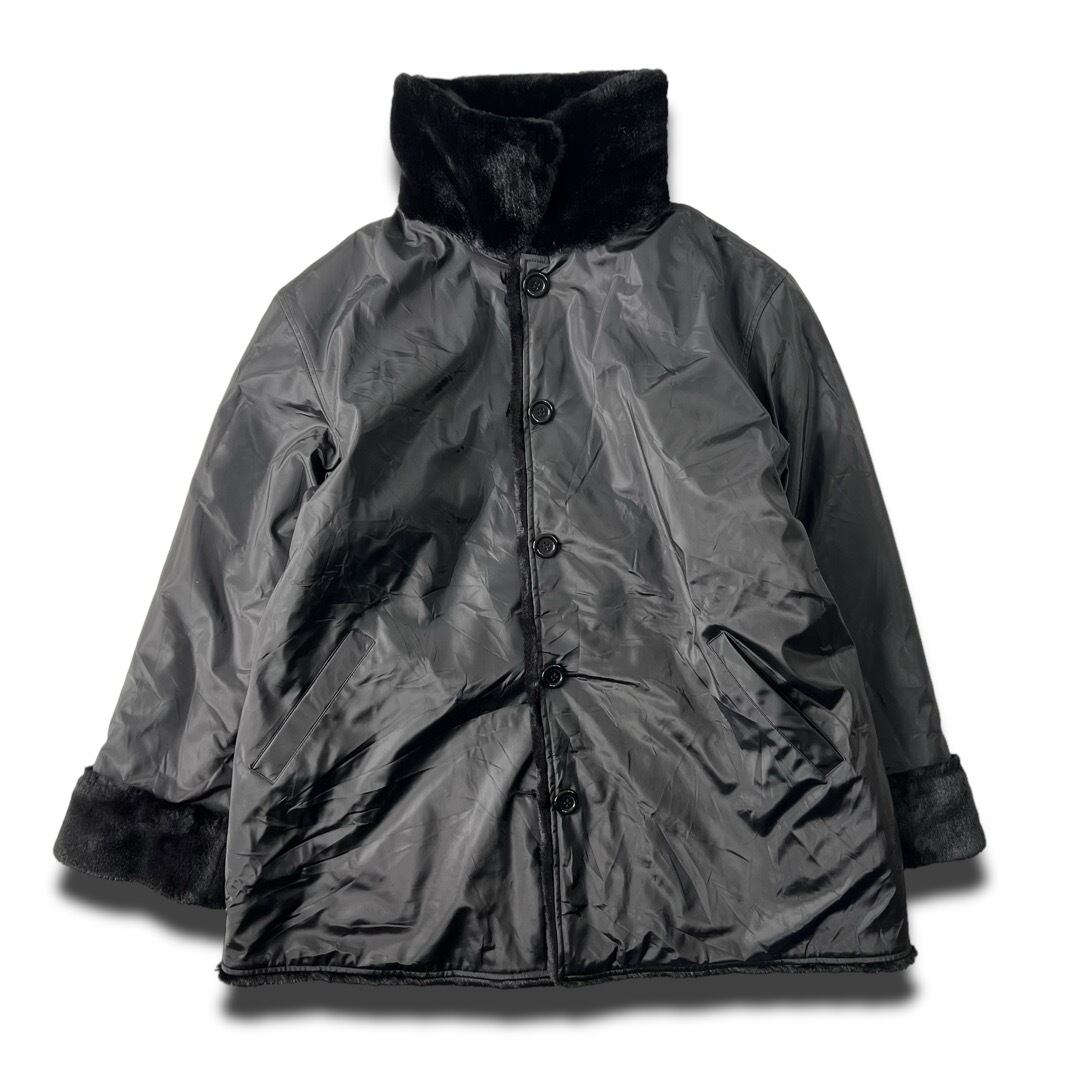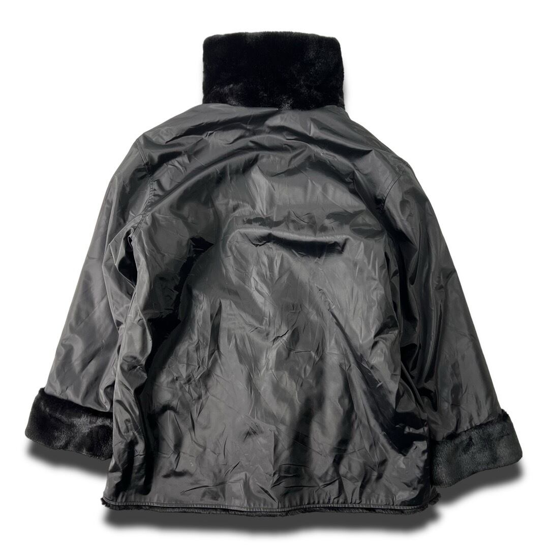 大きな襟が特徴的なリバーシブルのファージャケット。
