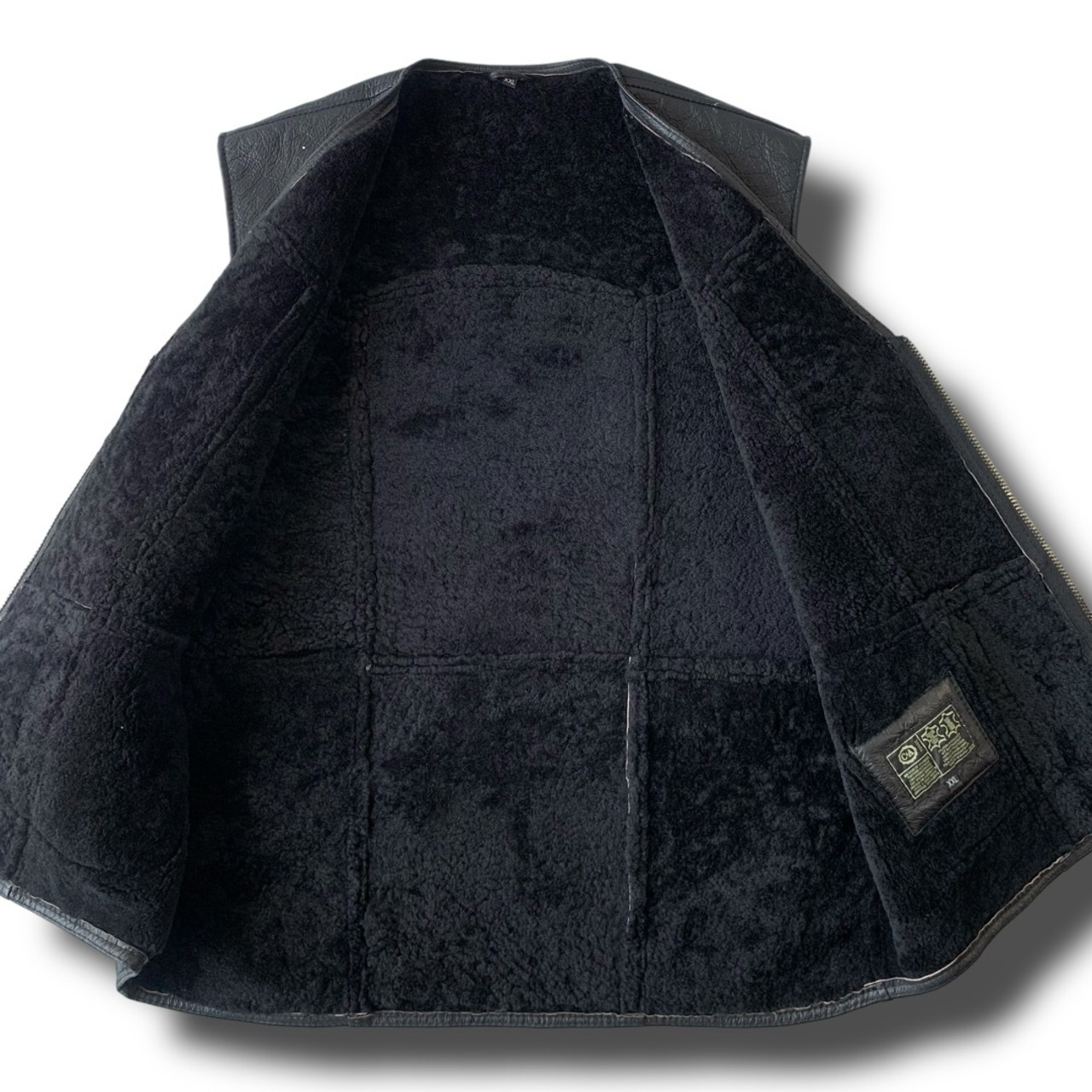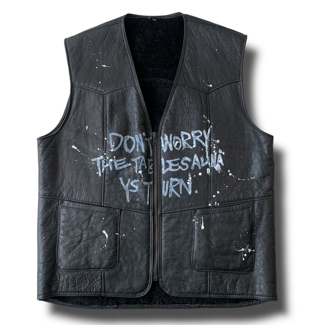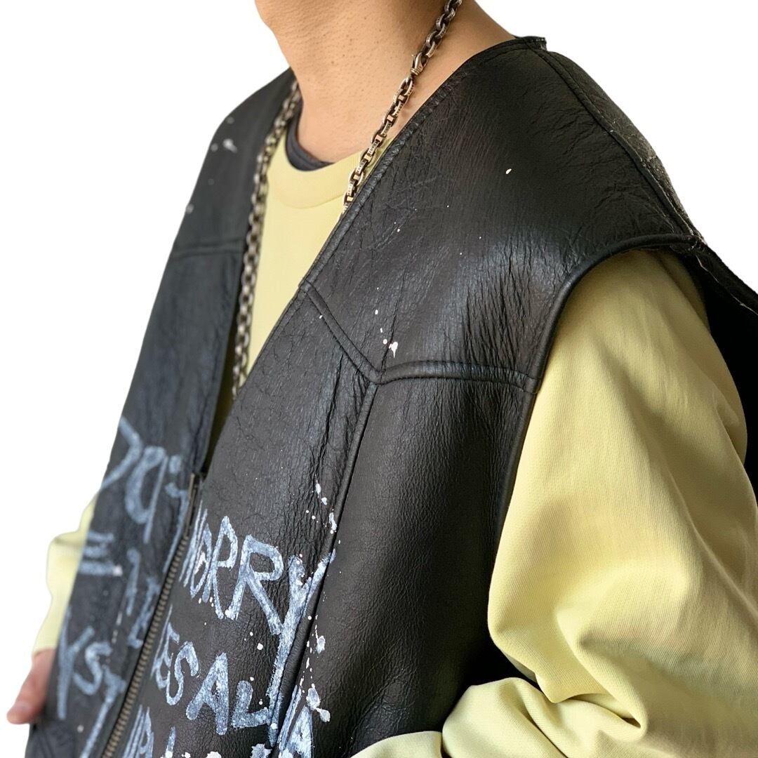 スカルのインパクト抜群なモチーフとメッセージのハンドペイントデザインがバチバチなレザージップベスト!!!
