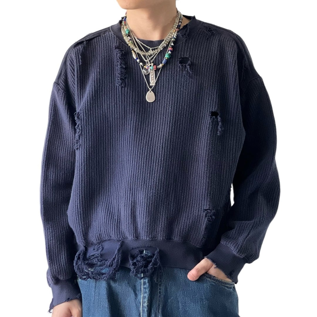 【70s〜80s OLD ISSEY MIYAKE】 "Crush Design" Cotton Knit Sweater