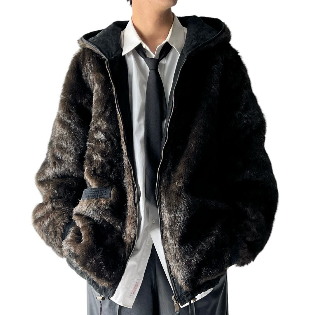 【CHARLES KLEIN】"GENUINE LEATHER"reversible Faux Fur Hooded Blouson