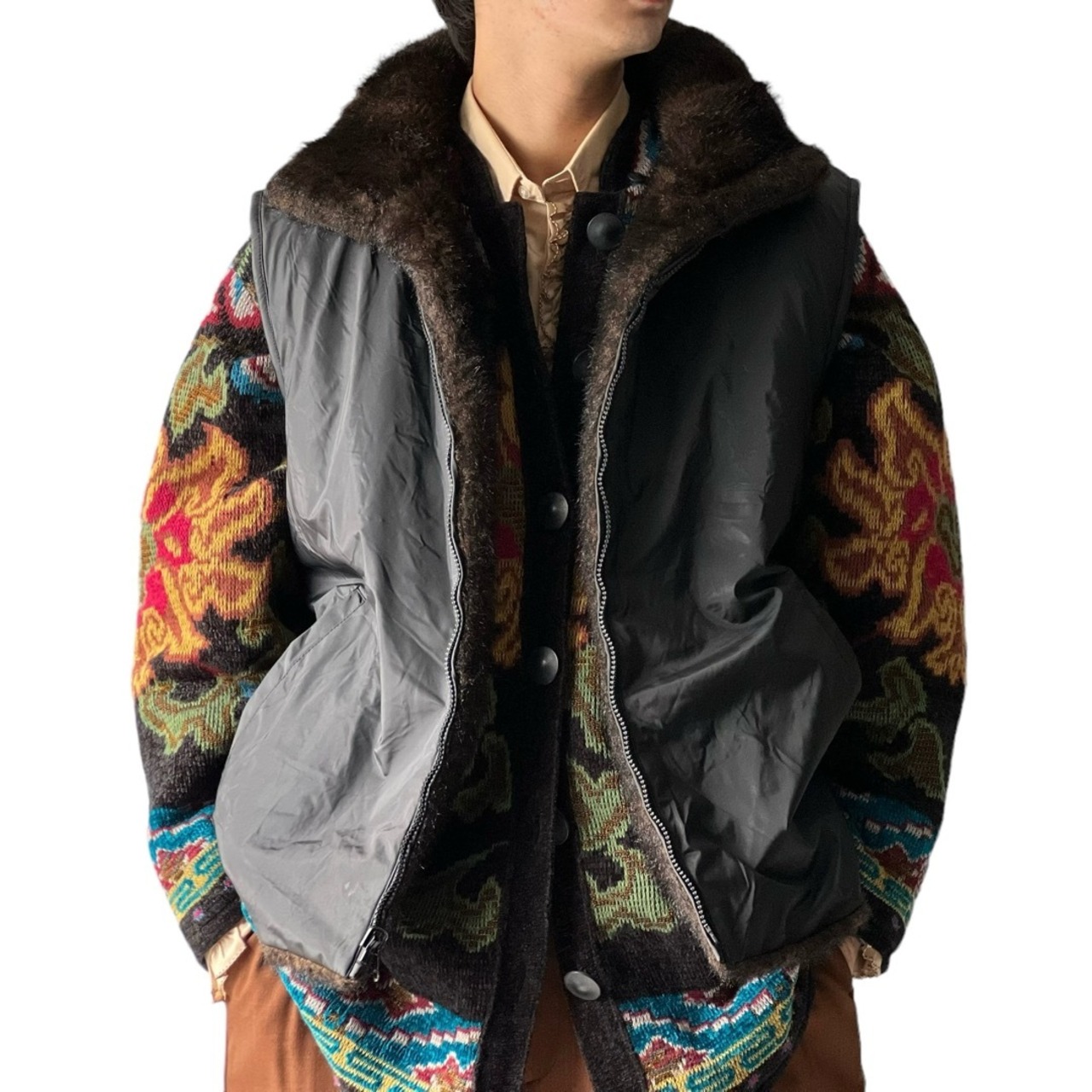 【giacca GALLERY】"Reversible pattern" Faux Fur stand neck Zip Vest -Brown-