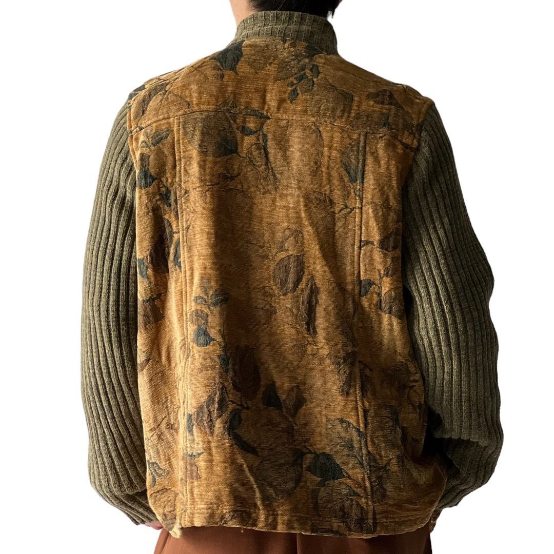 【SUSAN BRISTOL】"Switching Fabric Design Botanical pattern stand neck jacket